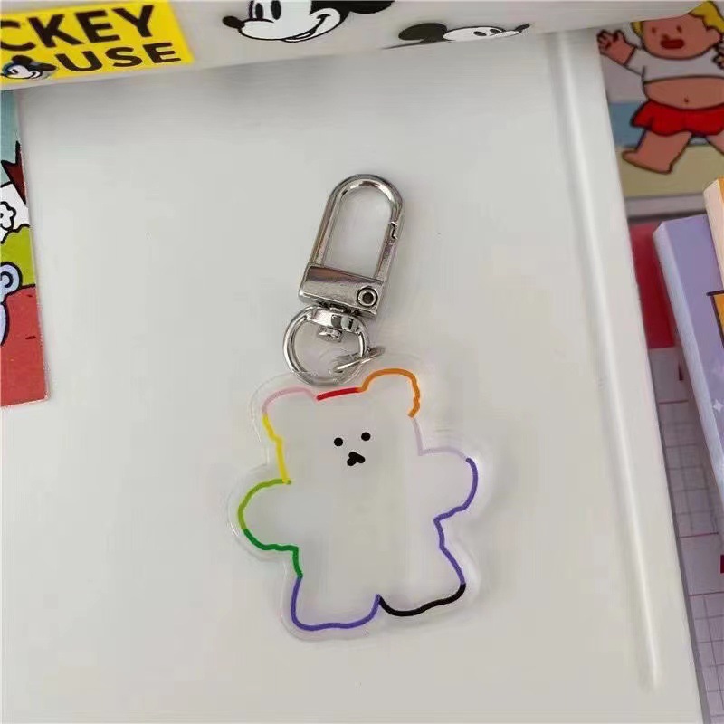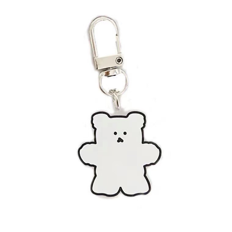 작은 흰 곰 열쇠 고리 작은 곰 펜던트 가방 아크릴 양면 인쇄 투명 색상 곰 매달려 체인 장식