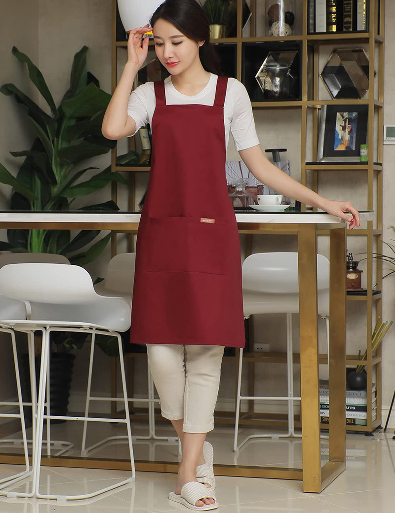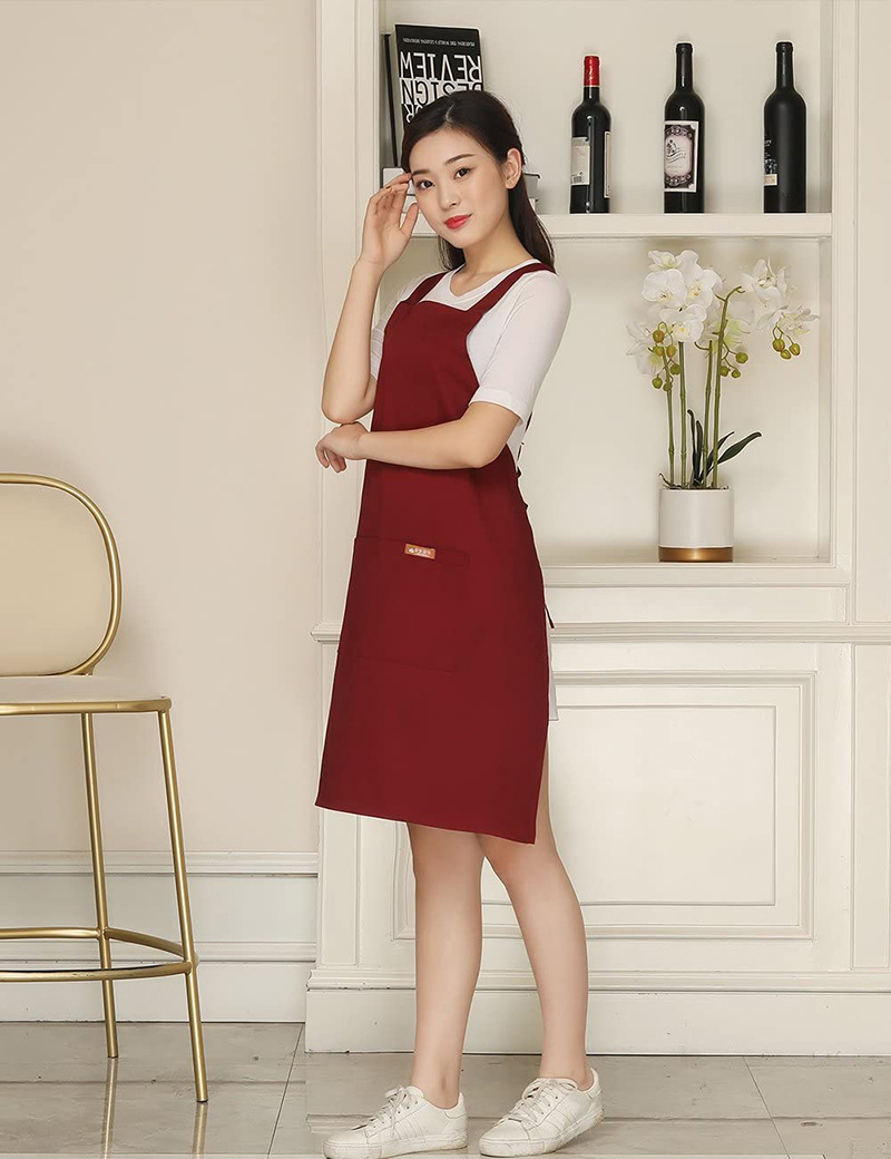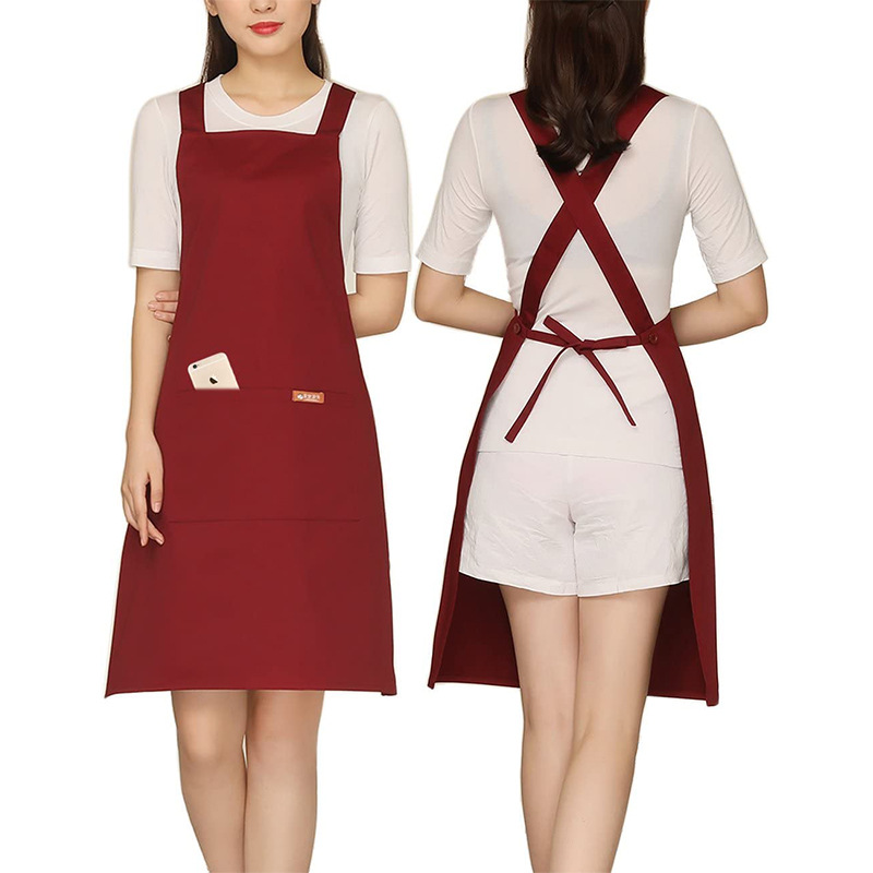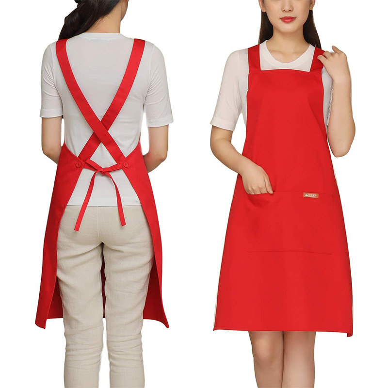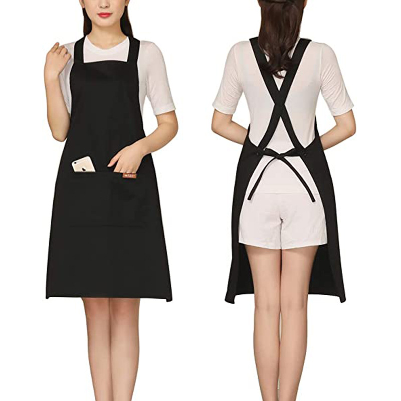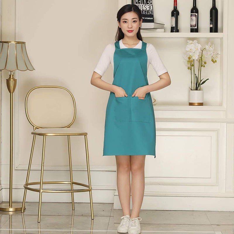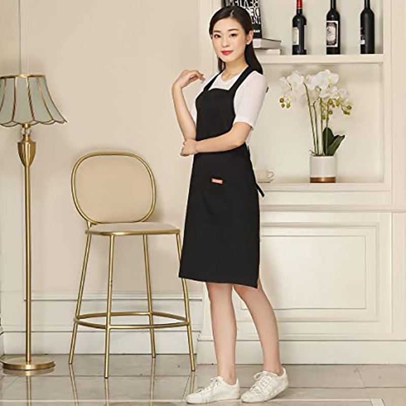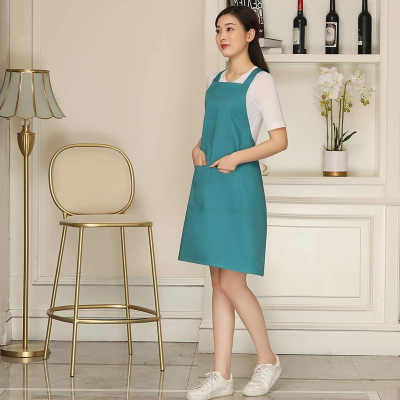 폴리에스터 면 광고 앞치마 크로스 스트랩 조절 버클 커스텀 로고 우유 찻집 커피 숍 작업복 앞치마