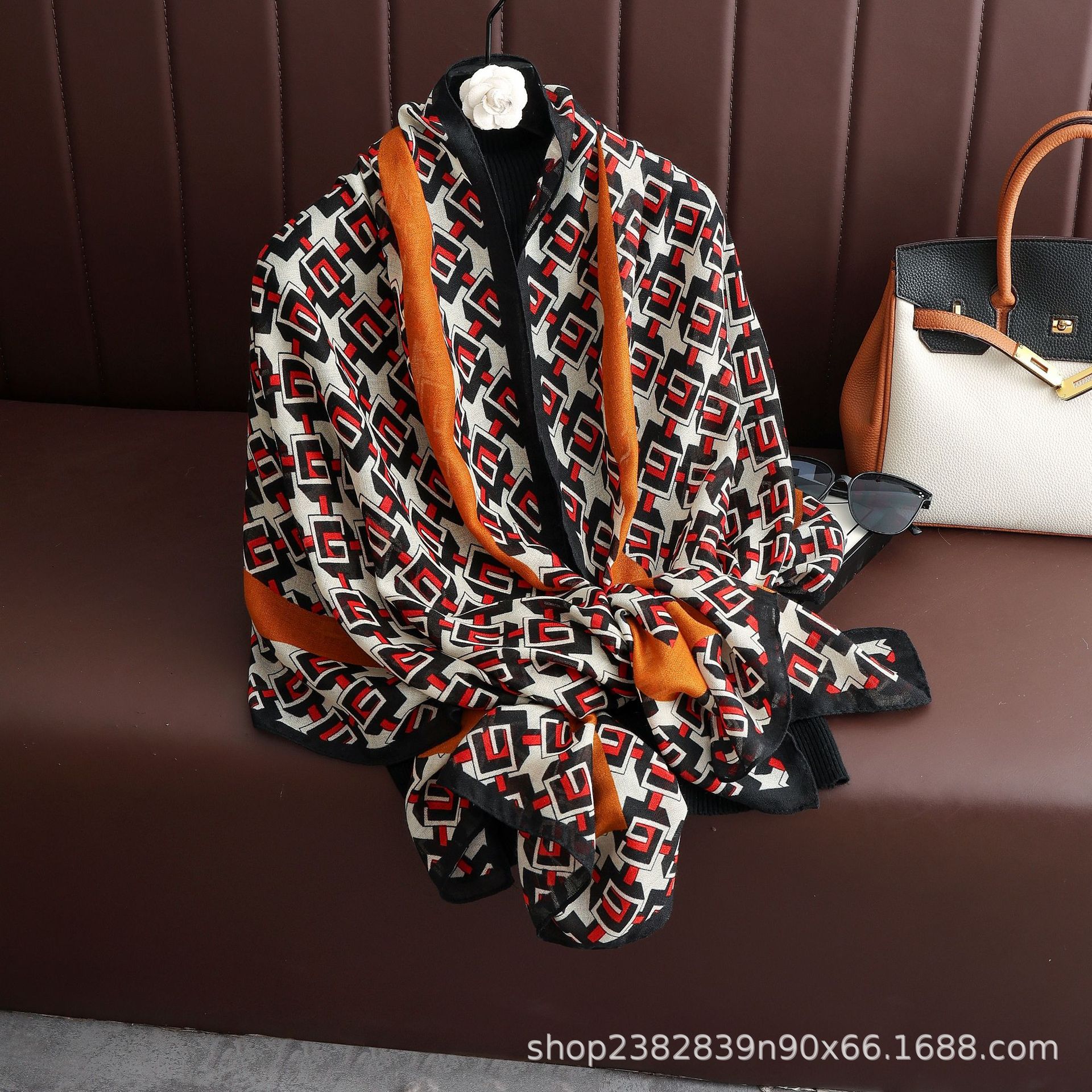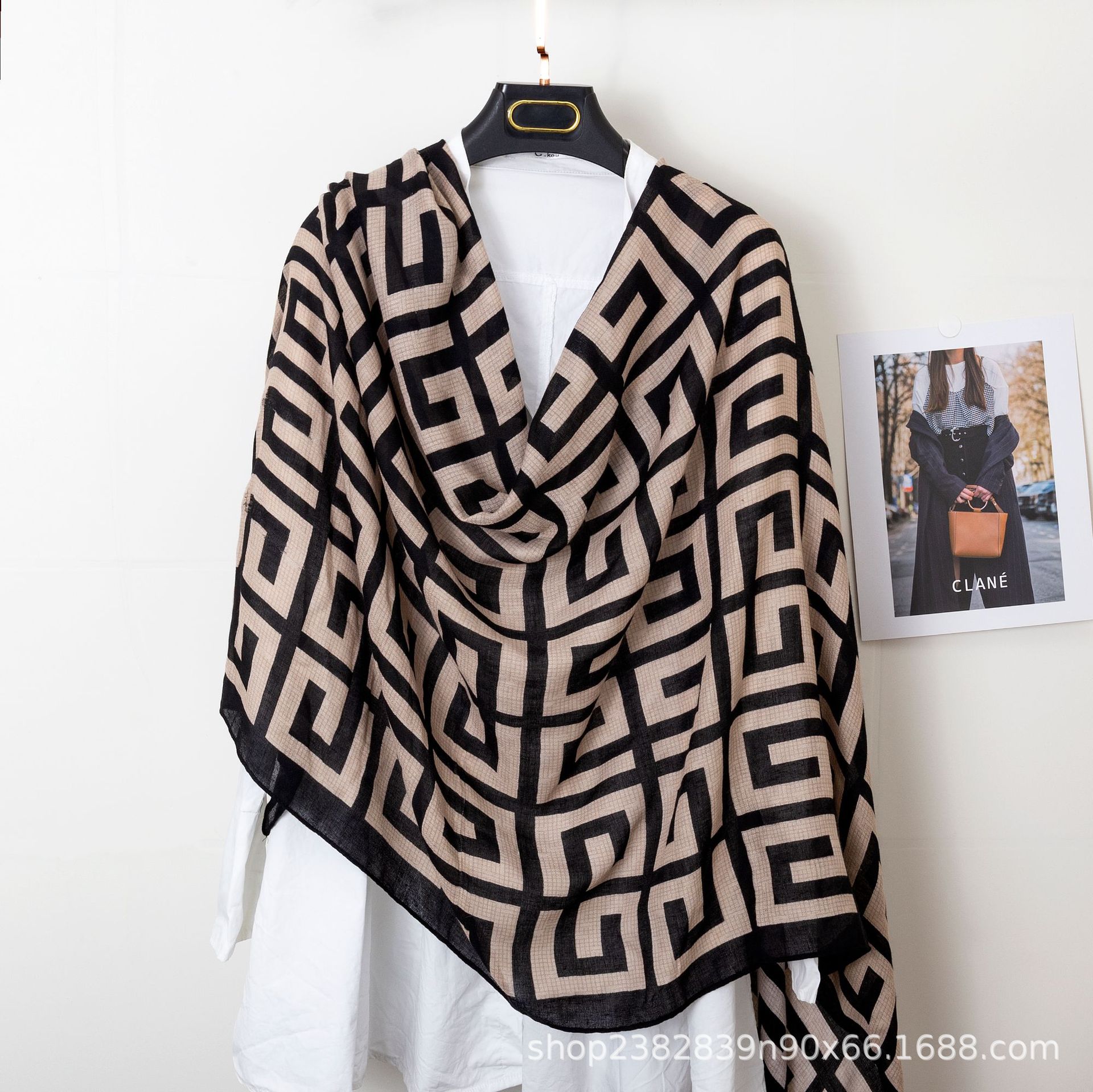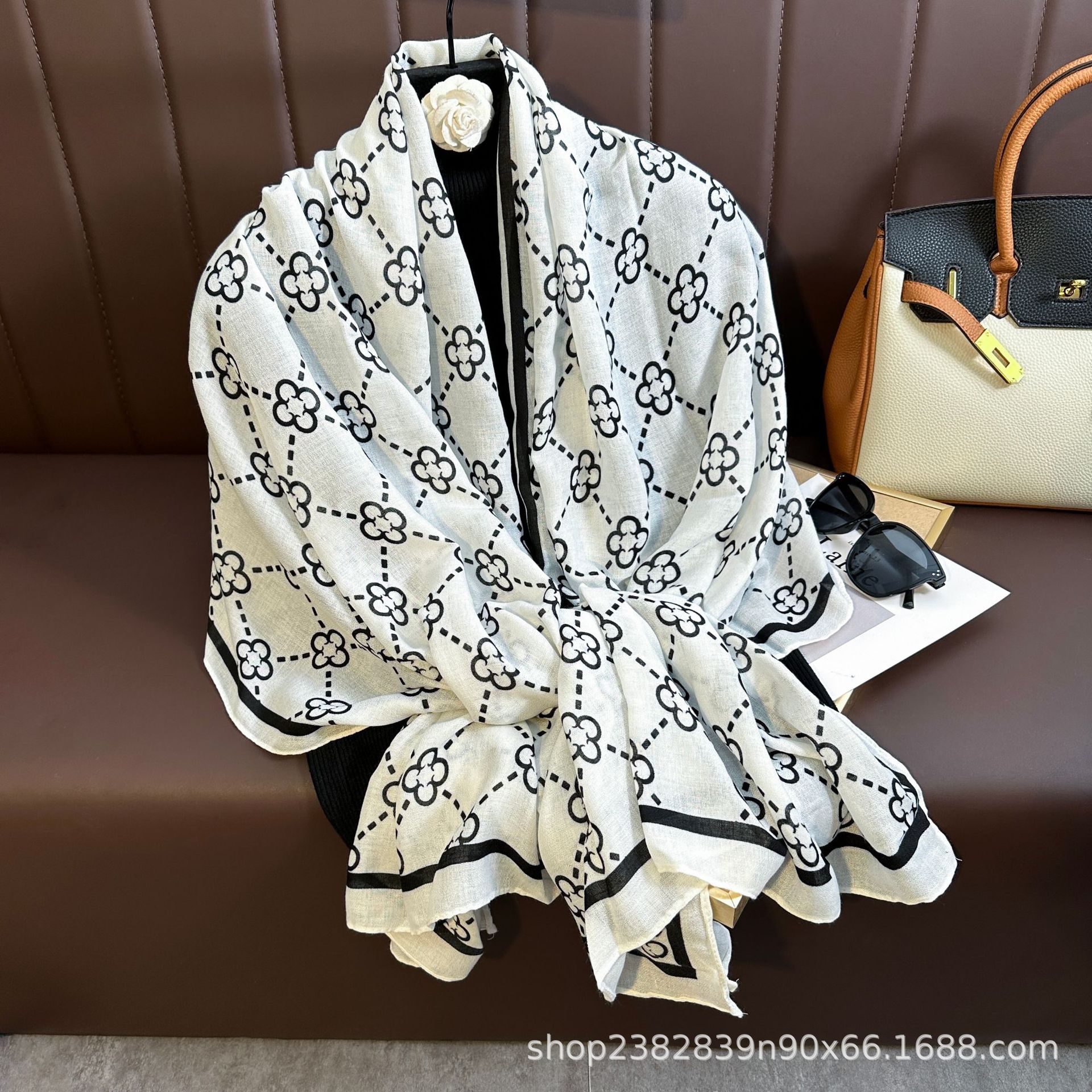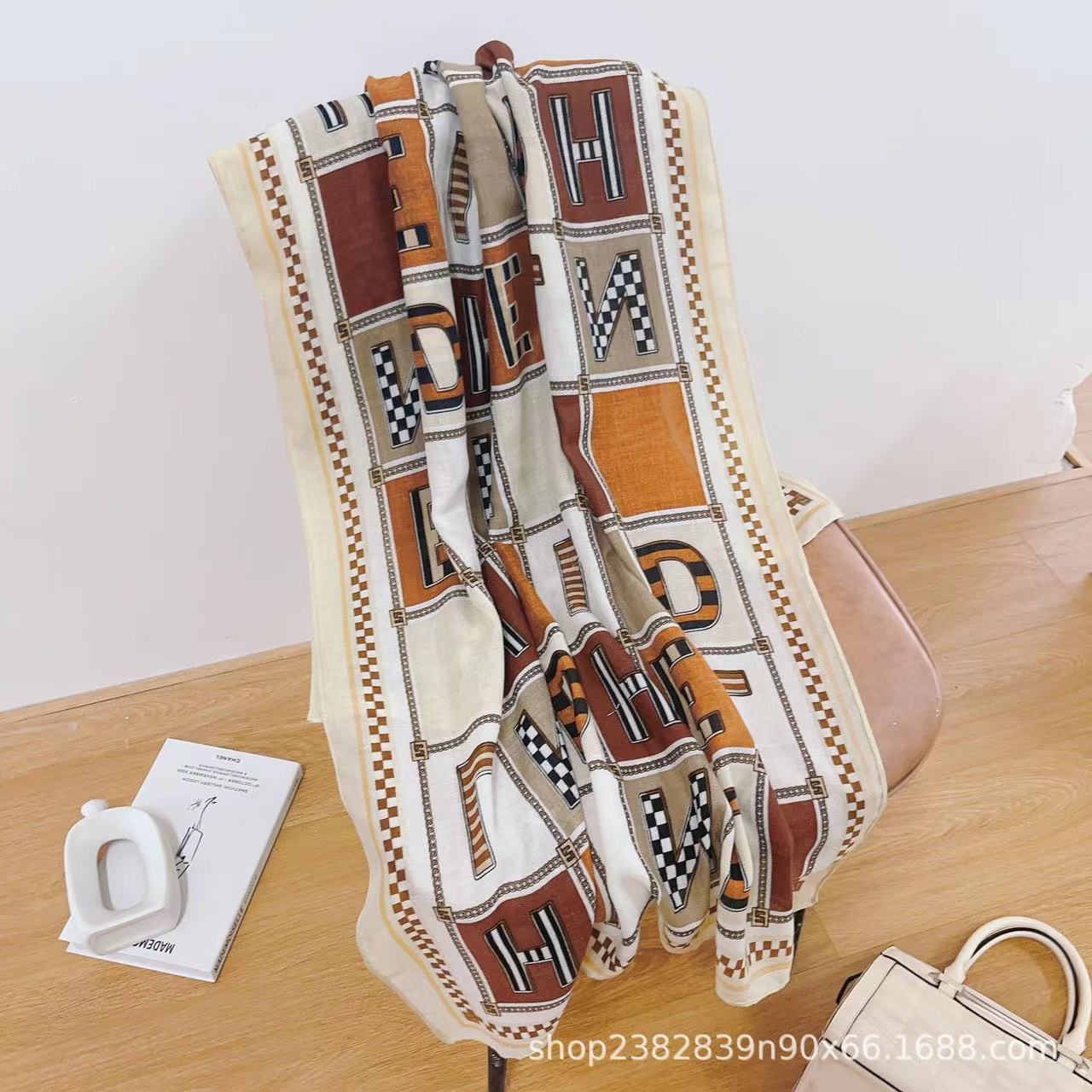 2024 여성을위한 새로운 면화 및 린넨 스카프 봄, 가을 유럽과 미국의 패션 편지 다목적 목도리 따뜻한 스카프 드롭 배송