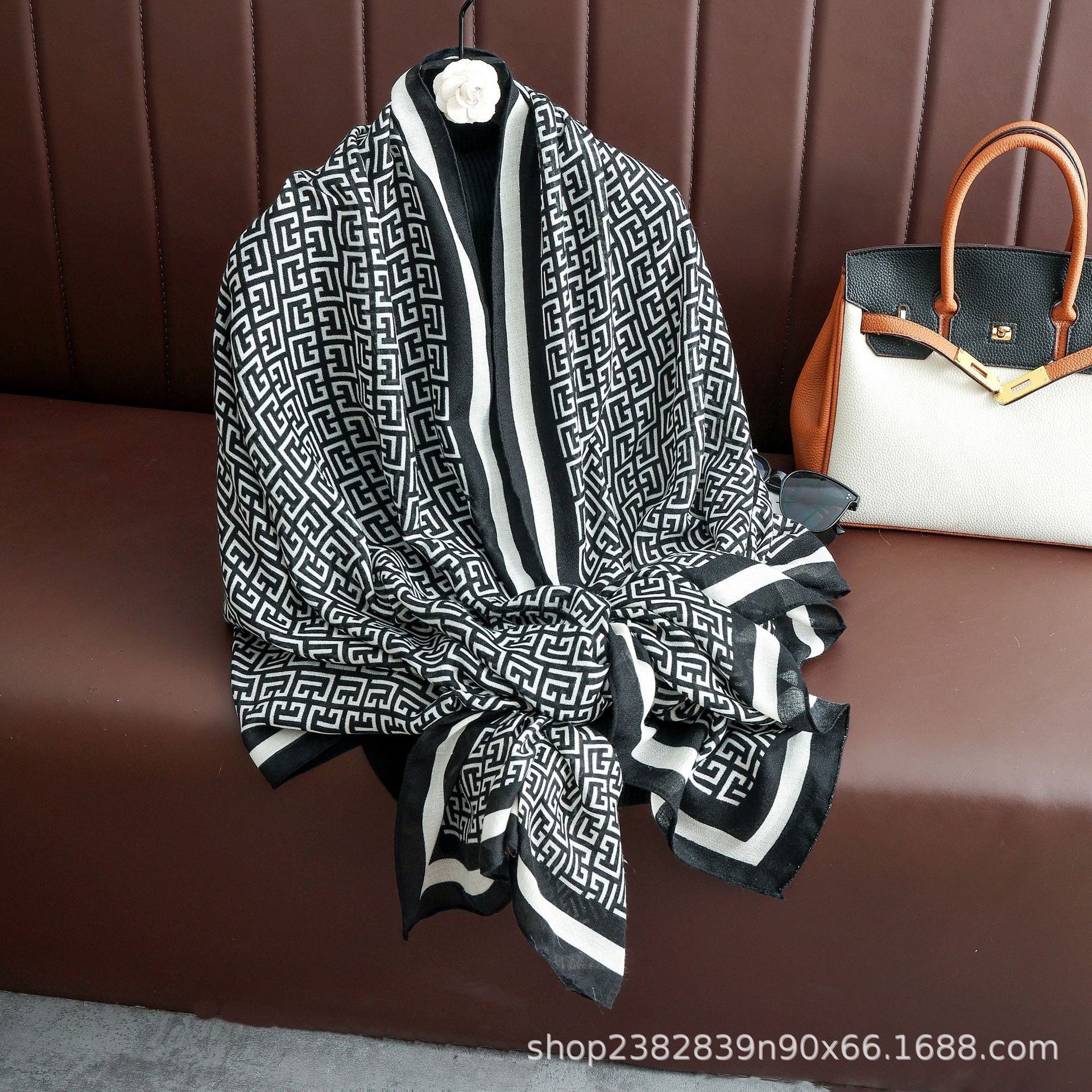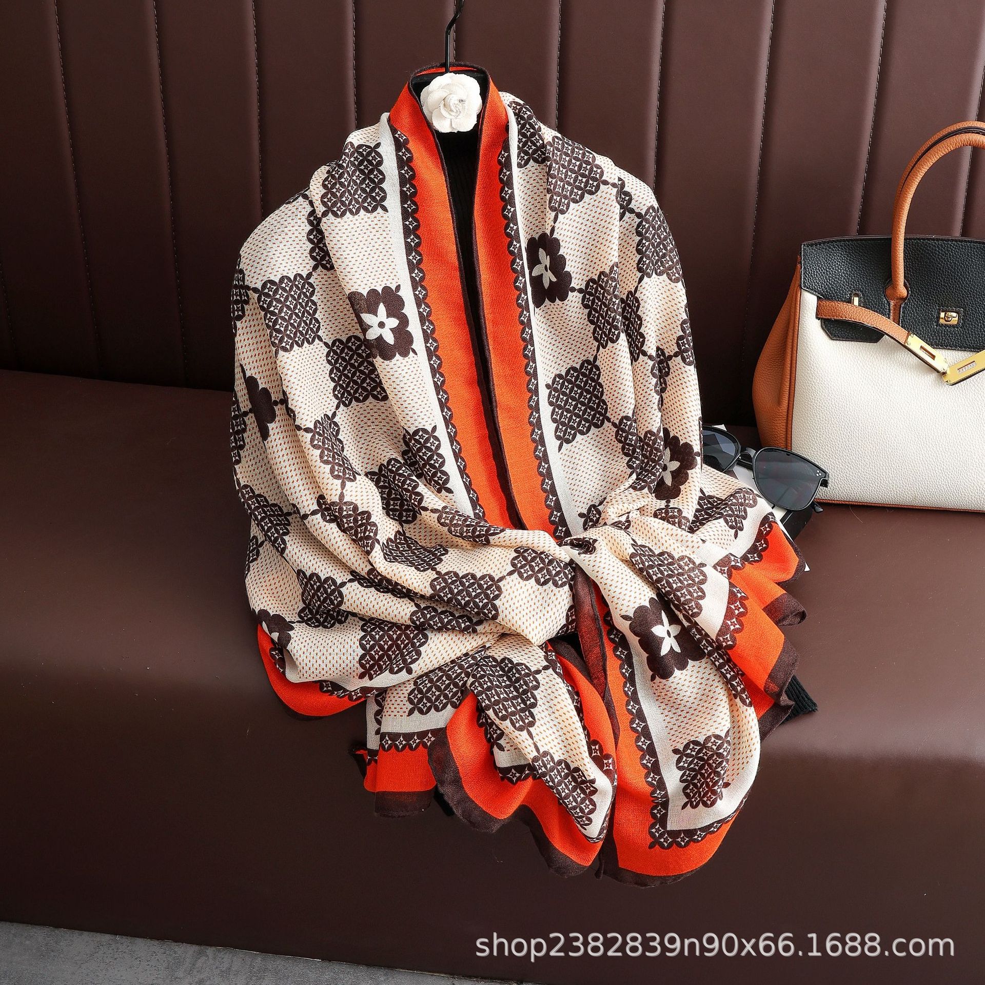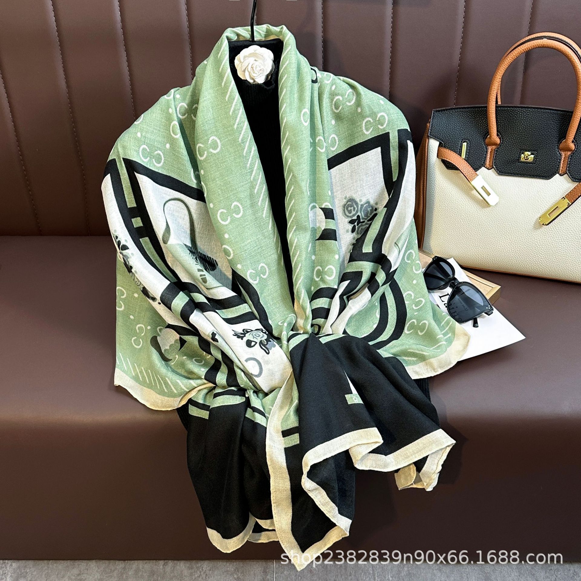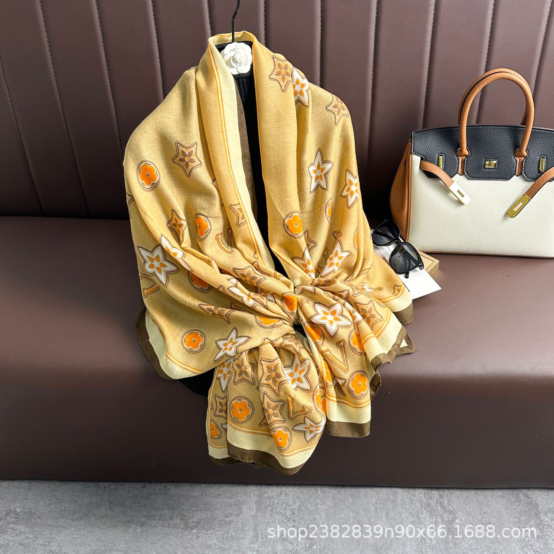 2024 여성을위한 새로운 면화 및 린넨 스카프 봄, 가을 유럽과 미국의 패션 편지 다목적 목도리 따뜻한 스카프 드롭 배송