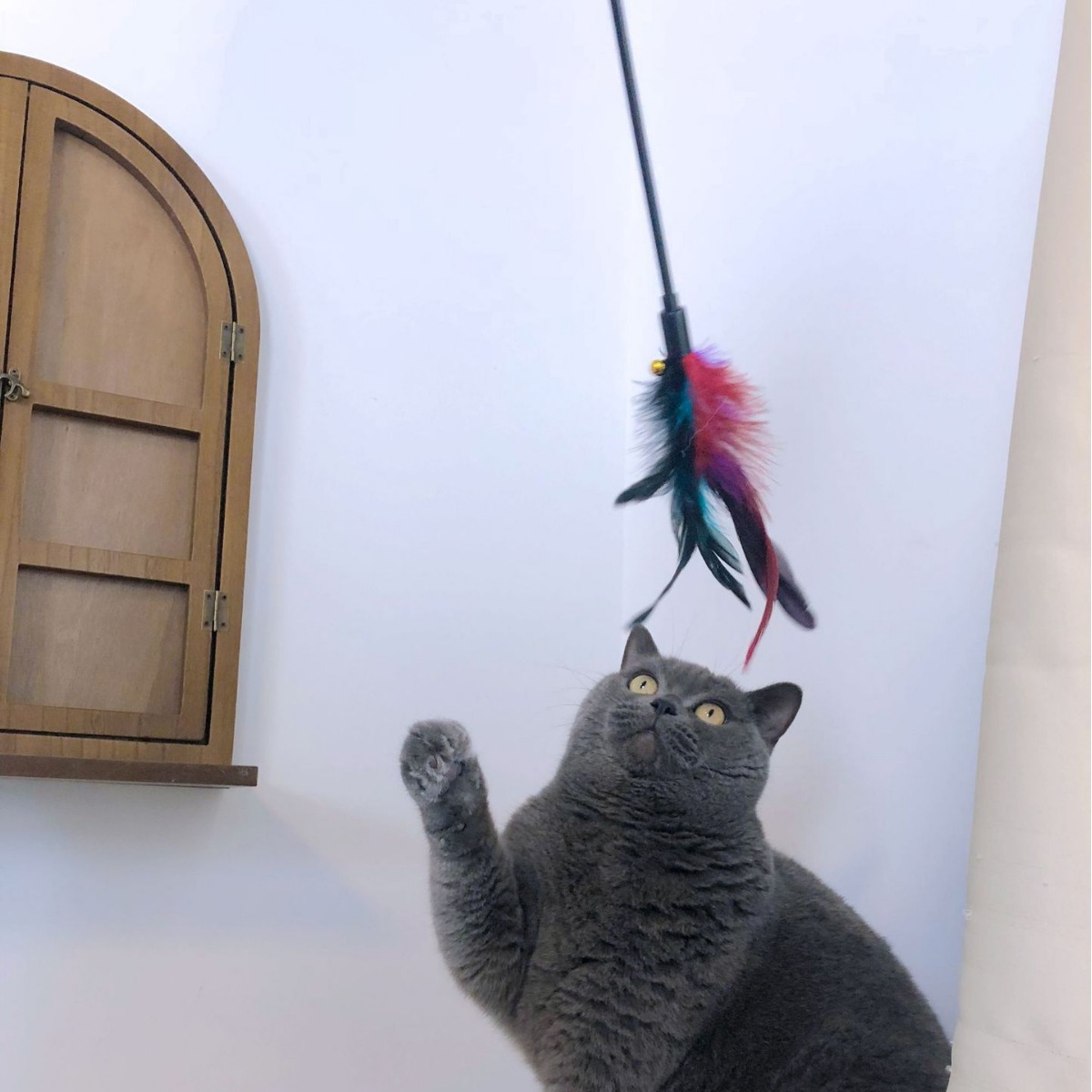 제조업체 도매 깃털 고양이 놀이 막대 65cm 고양이 장난감 용품 초장형 부드러운 막대 벨소리나는 장난감 고양이용스토어 가기