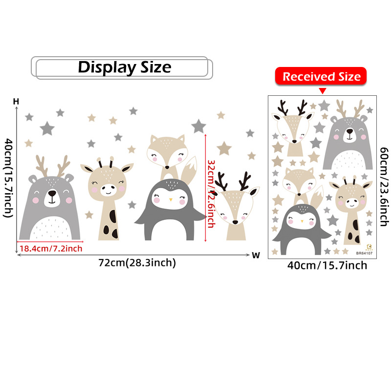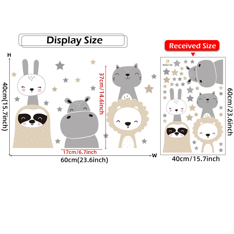 만화 귀여운 웃는 동물 자기 접착 벽 스티커 펭귄 하마 사자 어린이 방 배경 벽 장식 스티커스토어 가기