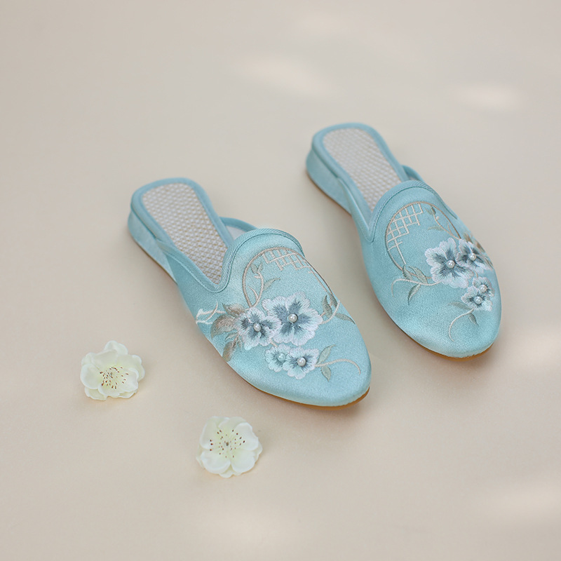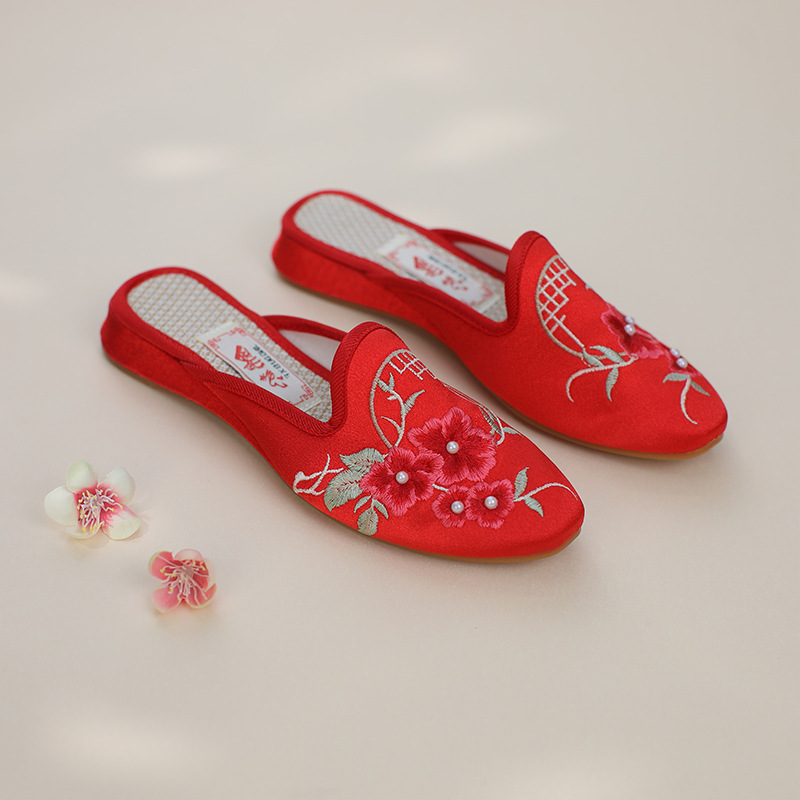 봄과 여름 새로운 여성 신발 높은 자수 슬리퍼 민족 복고풍 홈 편안한 통기성 부드러운 바닥 어머니 신발 여성