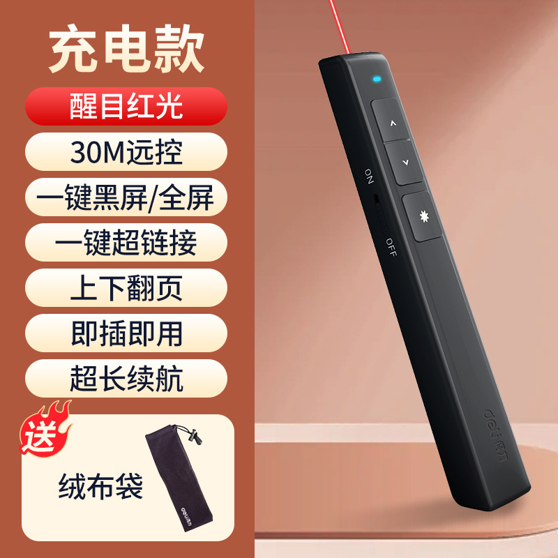 델리 ppt 페이지 플립 펜 2802P 다기능 레이저 펜 교사 사용 전자 포인터 멀티미디어 코스웨어 원격 제어 펜
