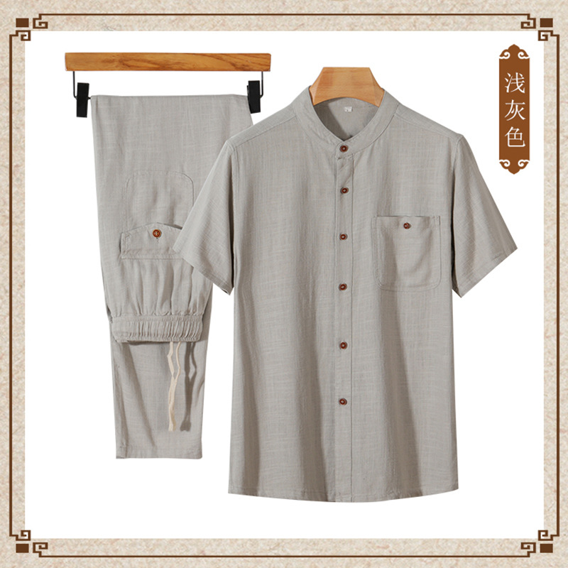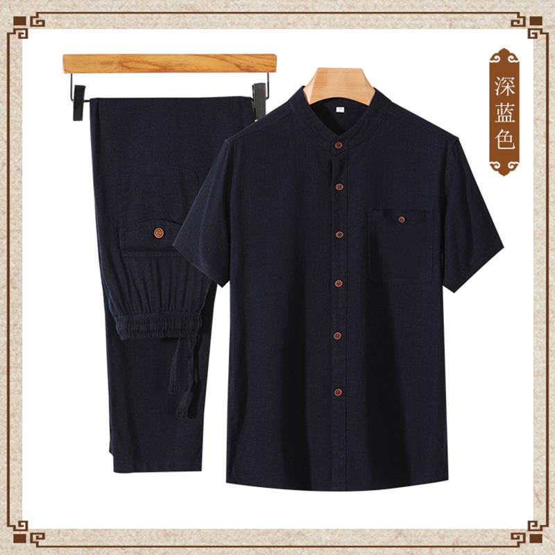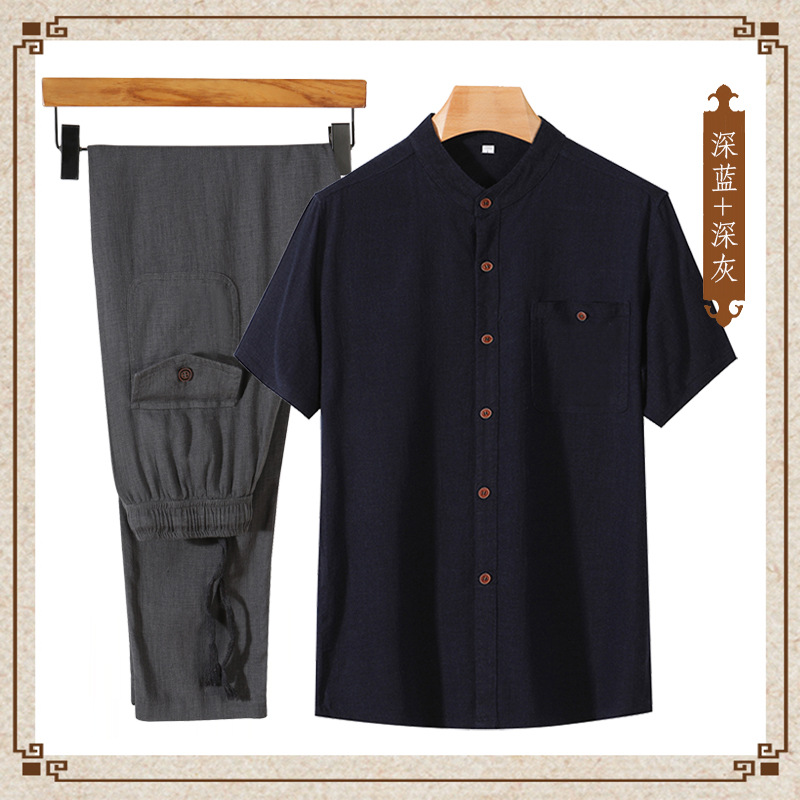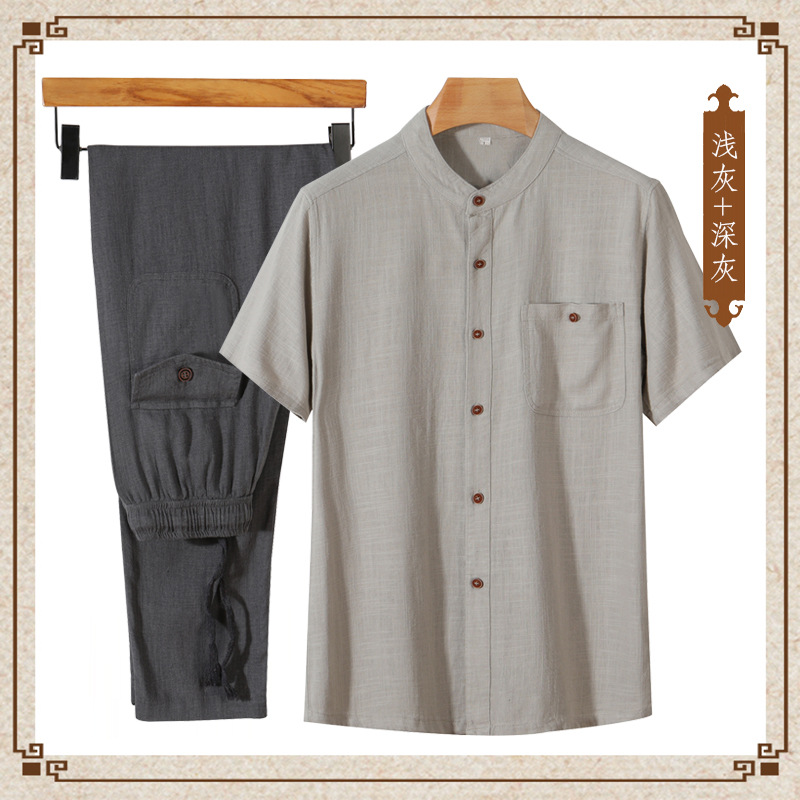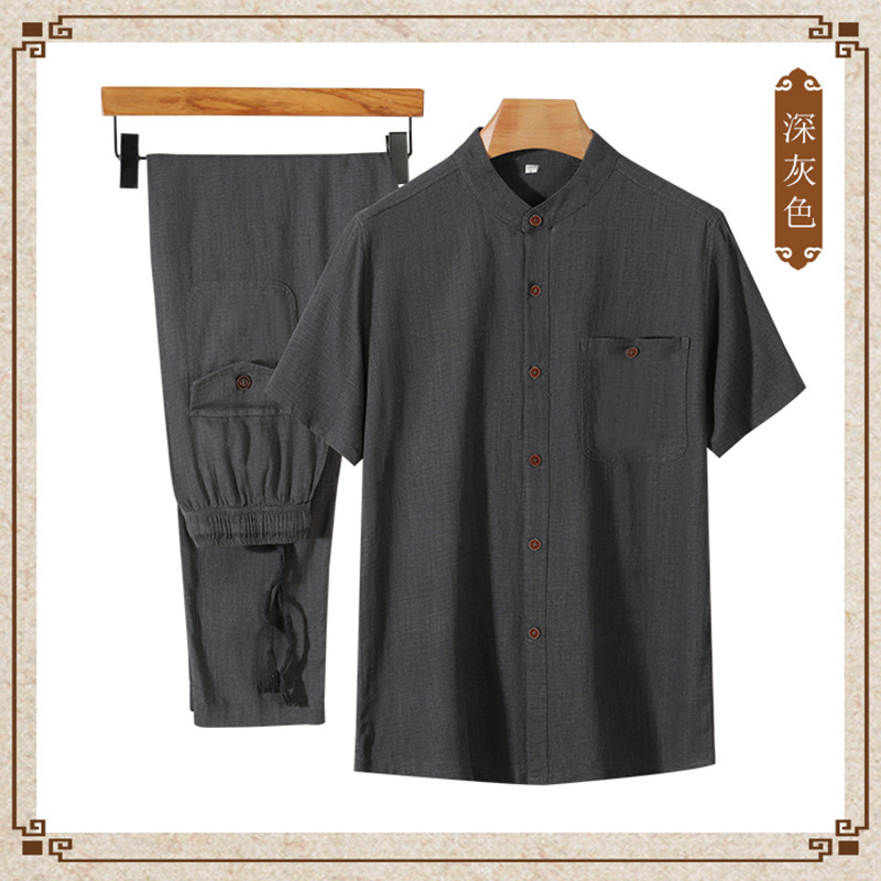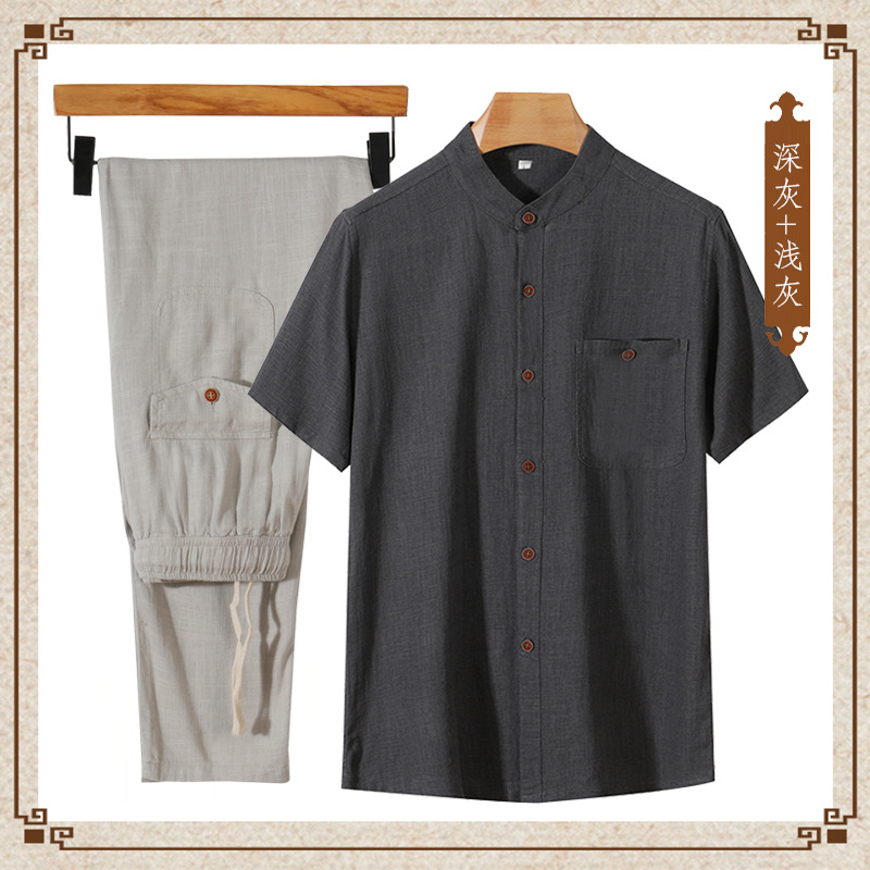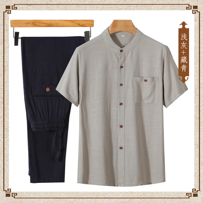 여름 새 린넨 플러스 사이즈 중년 남자의 반팔 셔츠 바지 세트 중국 스타일 남자의 린넨 세트스토어 가기