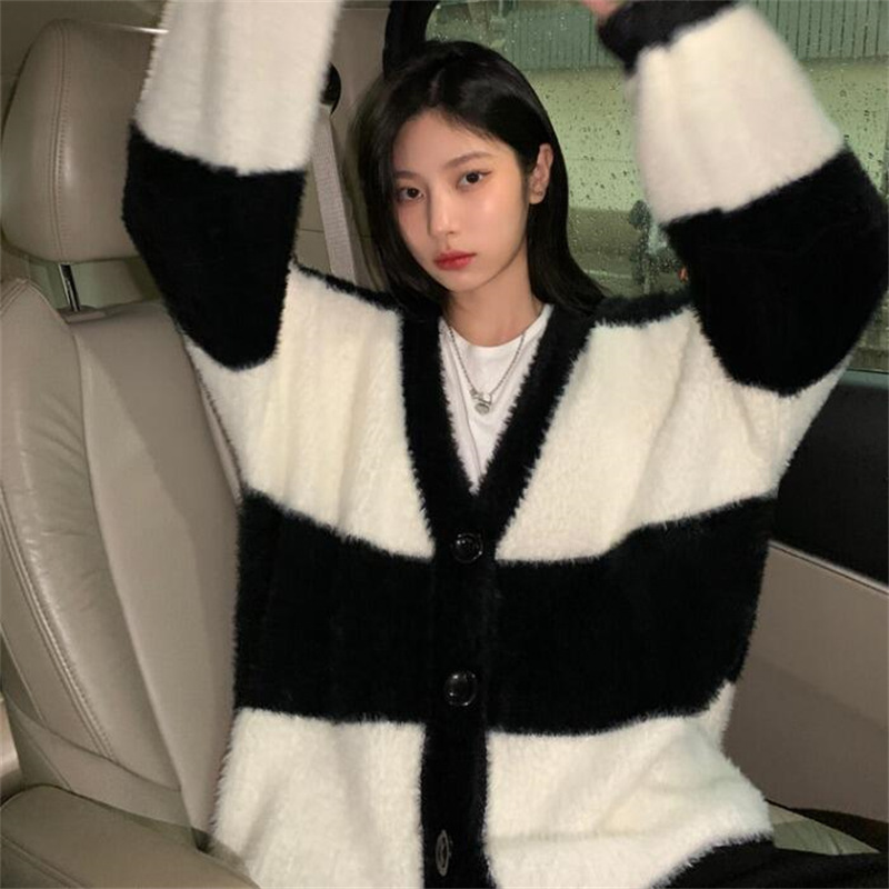 게으른 스타일 스웨터 여성의 가을과 겨울 두꺼운 느슨한 겉옷 복고풍 일본 밍크 미스트 길이 모든 매치 코트