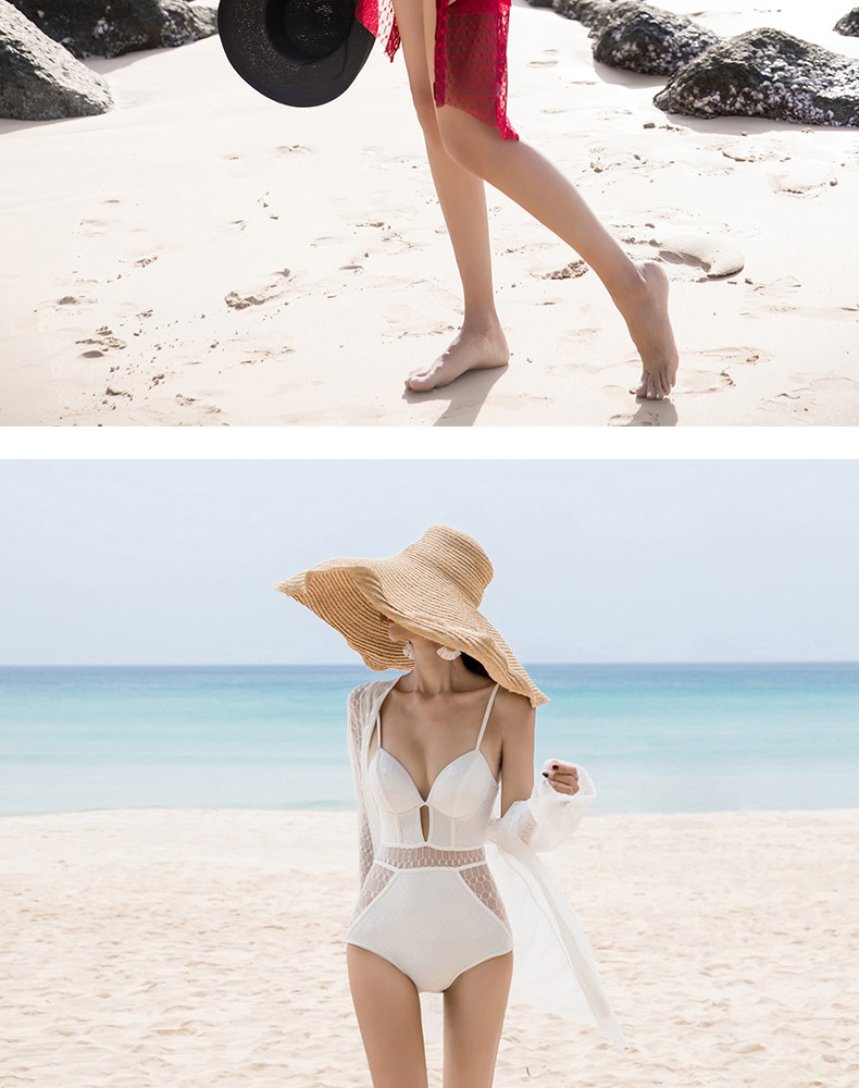 수영복 여성용 2022 New les 섹시한 시암 스틸 브래킷 작은 가슴 개더링 온천 배꼽 덮음 휴가 수영복