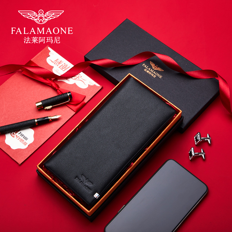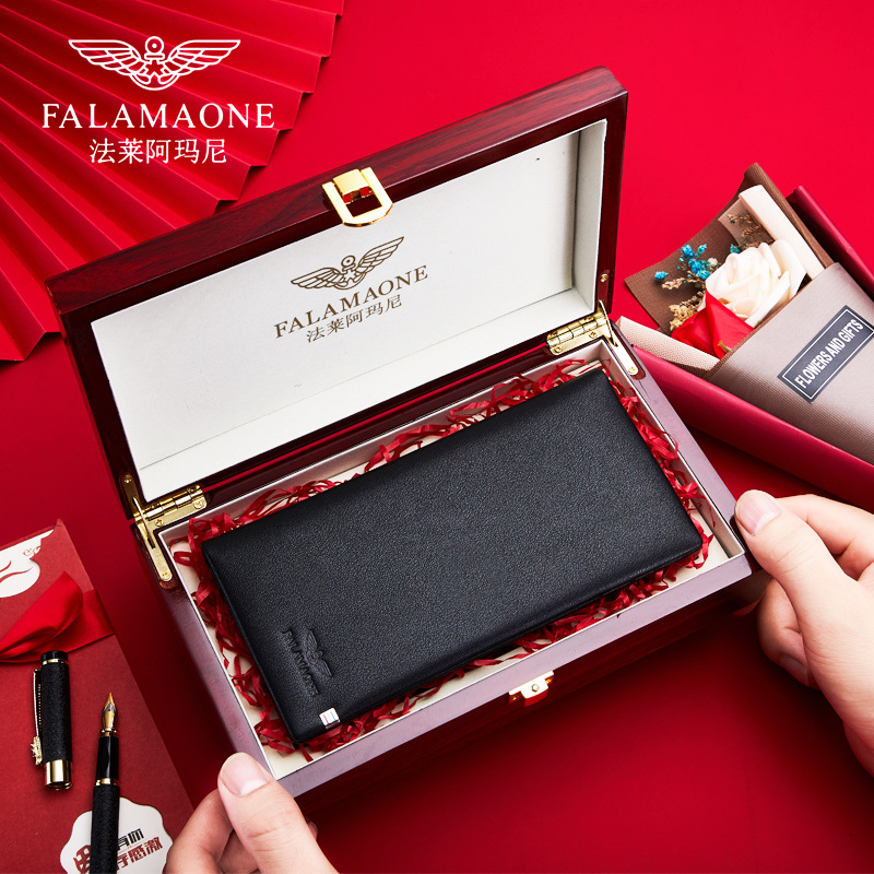 팔라이 아르마니 남성 지갑 정품 가죽 패션 긴 지갑 비즈니스 고급 지갑 남편 생일 선물
