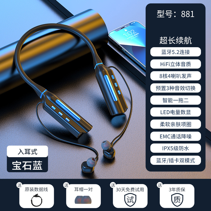 고품질 블루투스 헤드셋, 목 장착형, 10,000mAh 듀얼 배터리, 중저음, 음성 플러그, 범용스토어 가기