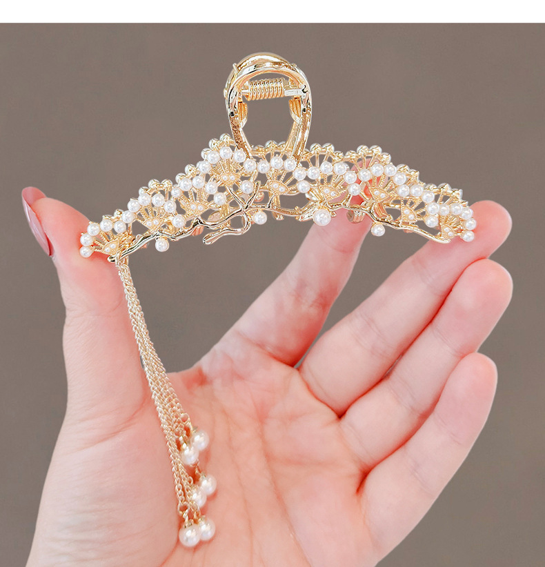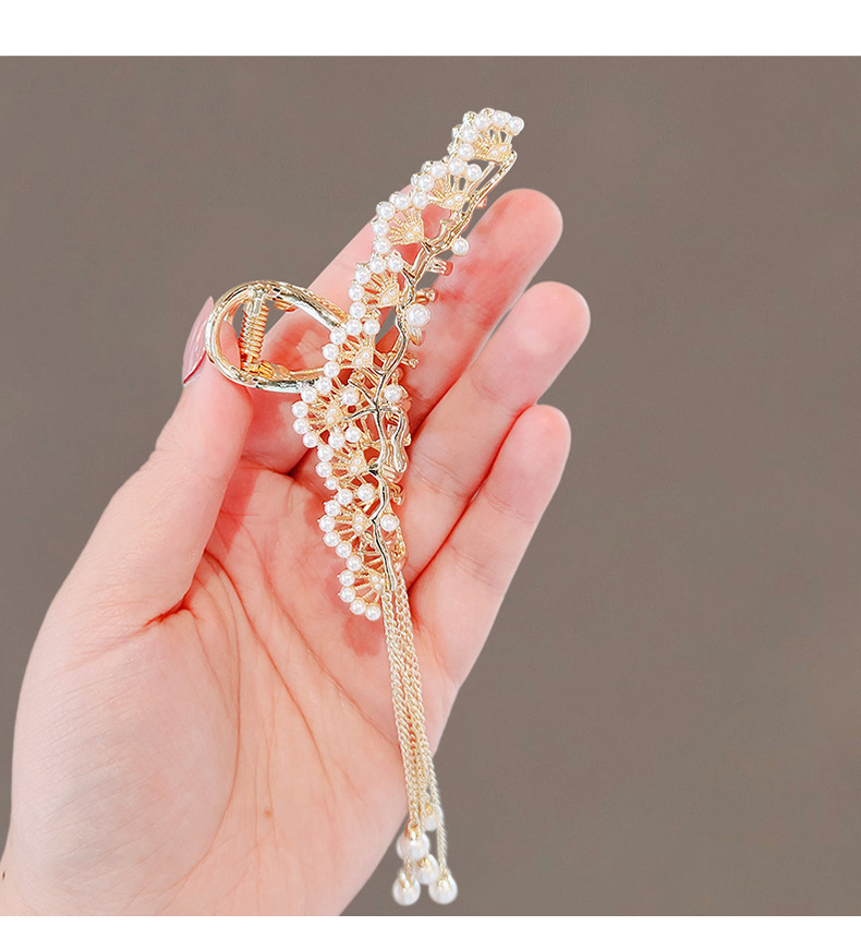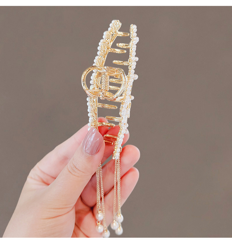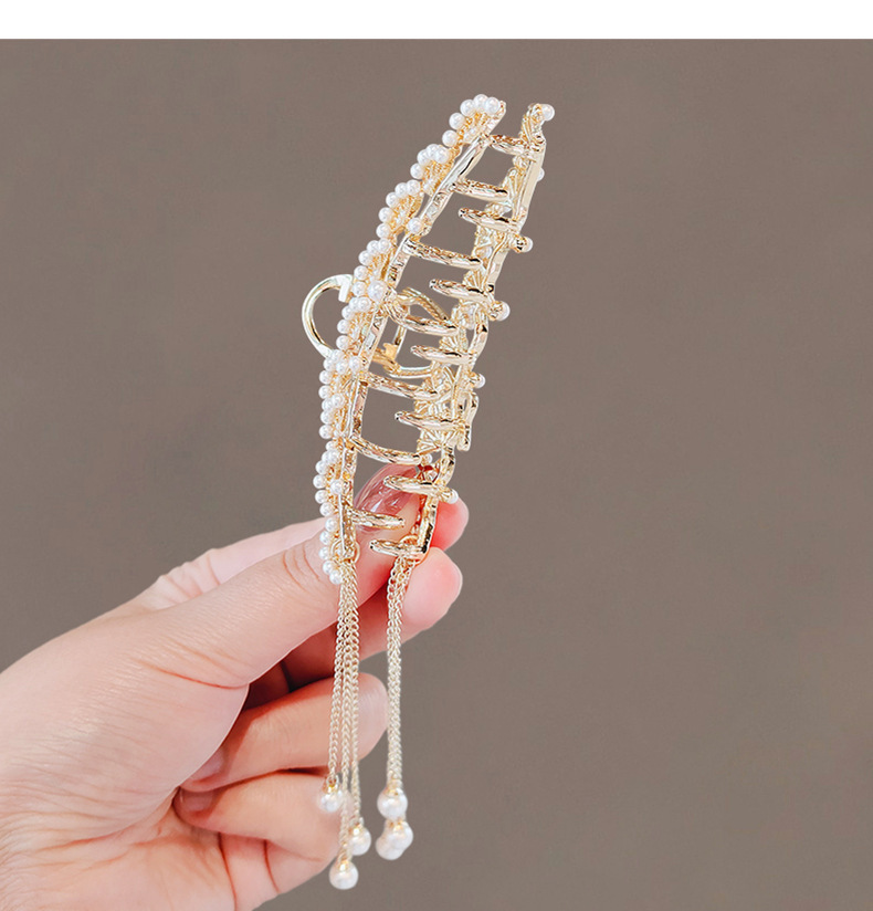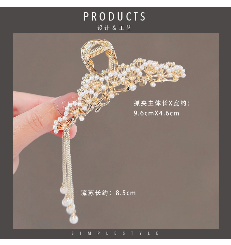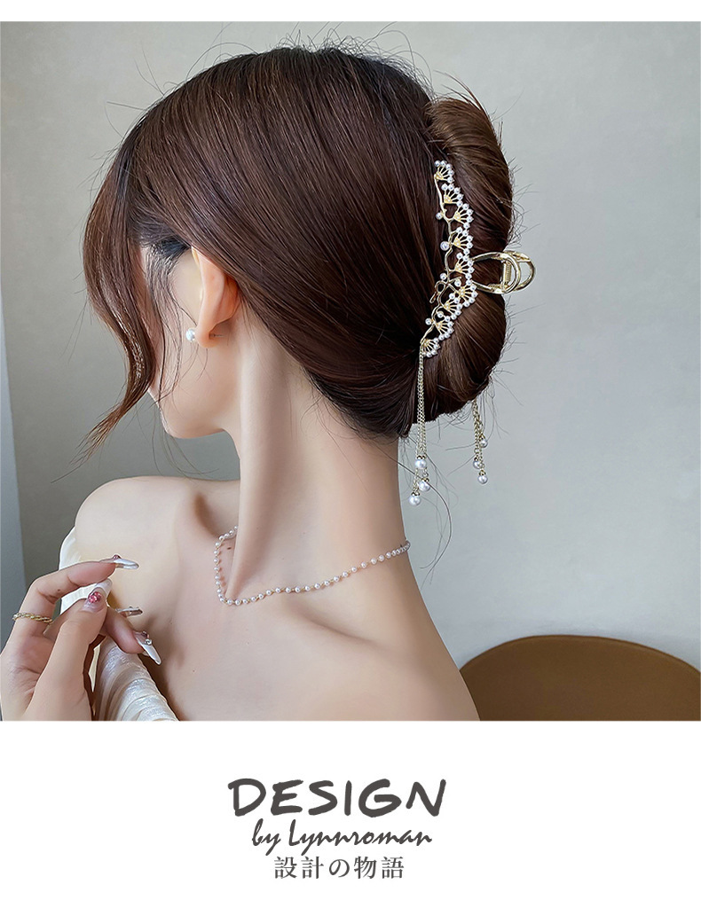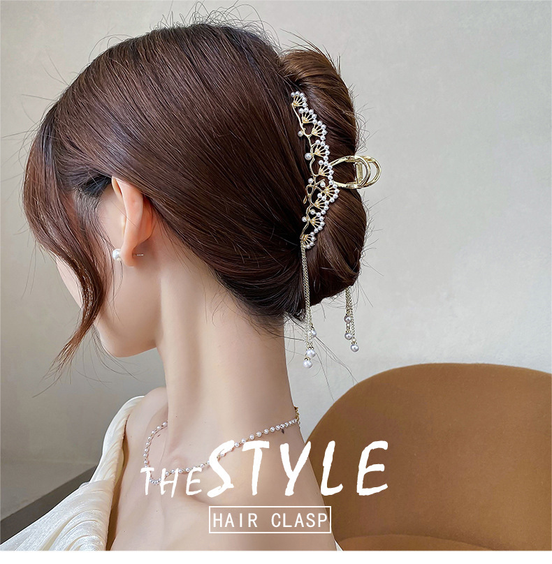 금속 골동품 진주 술 클램프 대형 2022 인터넷 연예인 새로운 백 헤드 머리핀 여성용 시니어 상어 클립
