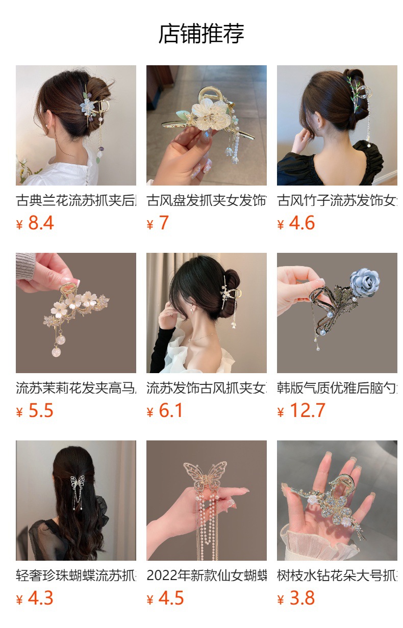 금속 골동품 진주 술 클램프 대형 2022 인터넷 연예인 새로운 백 헤드 머리핀 여성용 시니어 상어 클립스토어 가기