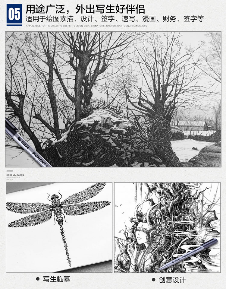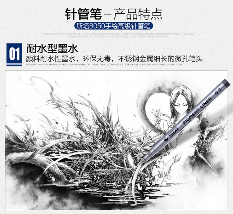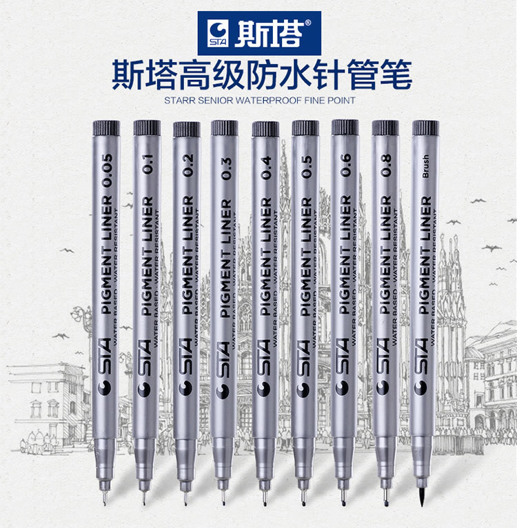 Stasta Gouxie 펜 바늘 펜 0.8 아트 특별 스케치 그리기 손으로 그린 만화 추적 매우 미세한 펜