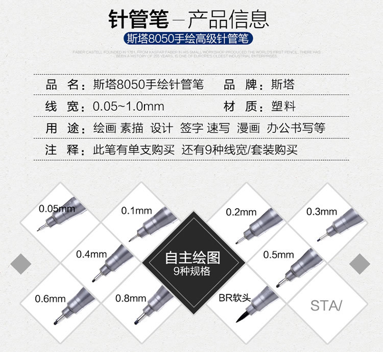 Stasta Gouxie 펜 바늘 펜 0.8 아트 특별 스케치 그리기 손으로 그린 만화 추적 매우 미세한 펜스토어 가기