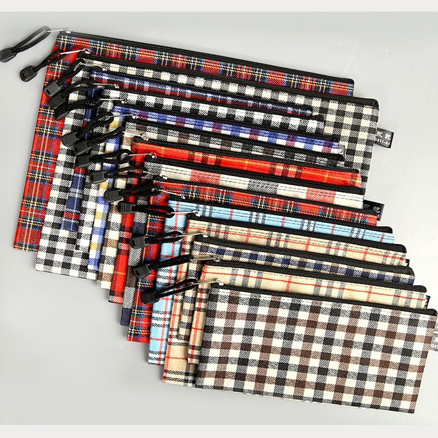 A4 격자 무늬 지퍼 토트 백 데이터 파일 백 캔버스 옥스포드 천 파일 저장 가방