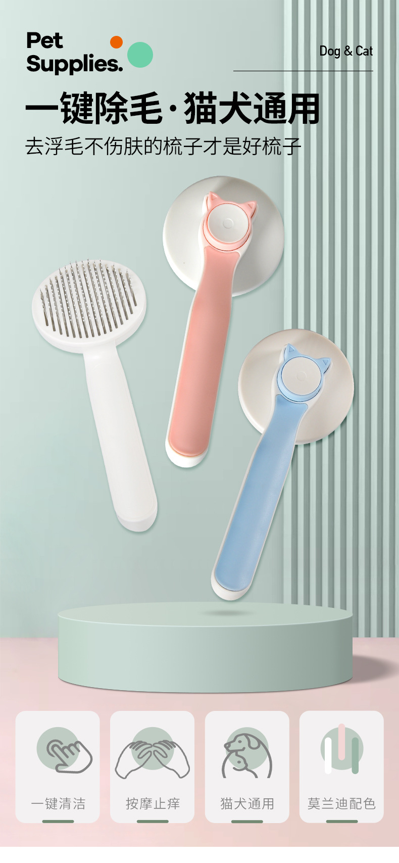 고양이 빗 개 머리 고양이 헤어 클리너 롤 고양이 떠 다니는 머리 바늘 빗 헤어 브러시 긴 머리 특수 애완 동물 짧은 머리 제거 빗스토어 가기