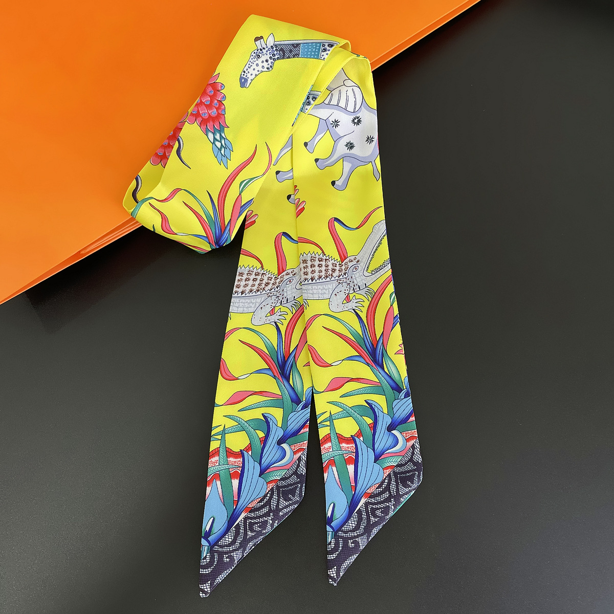 AliExpress 옐로우 스몰 실크 스카프 여성용 봄과 여름 모든 매치 셔츠 세트 스카프와 긴 헤어 스트랩 타이 백 리본