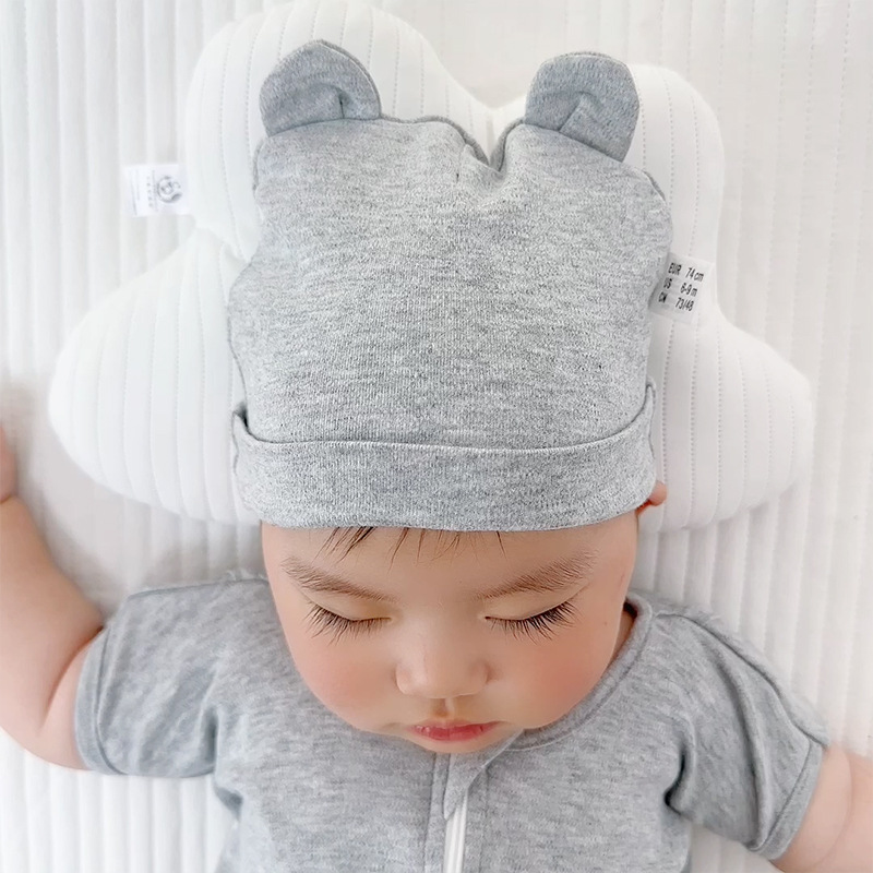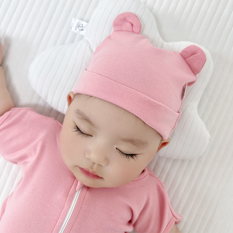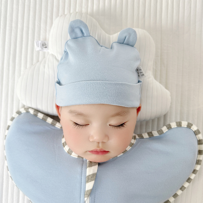 더블 레이어 코튼 바 이노 럴 베이비 캡 아기 풀오버 캡 신생아 태아 모자 단색 어린이 모자 0-1 세