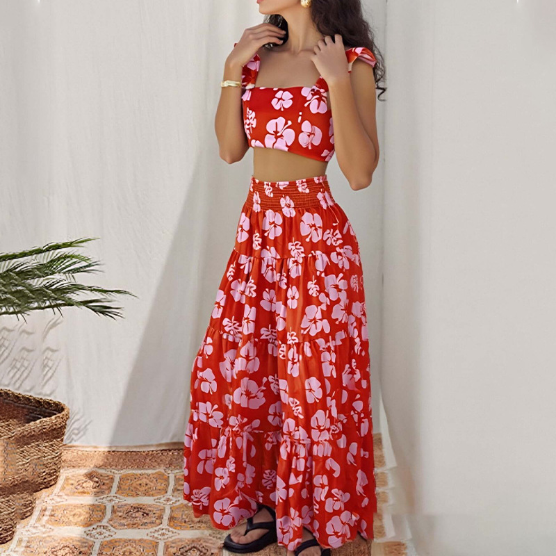 2025 봄 신작 유럽과 미국 아마존 통근 중간 허리 섹시한 서스펜더 스커트 패션 정장 여성 투피스 세트
