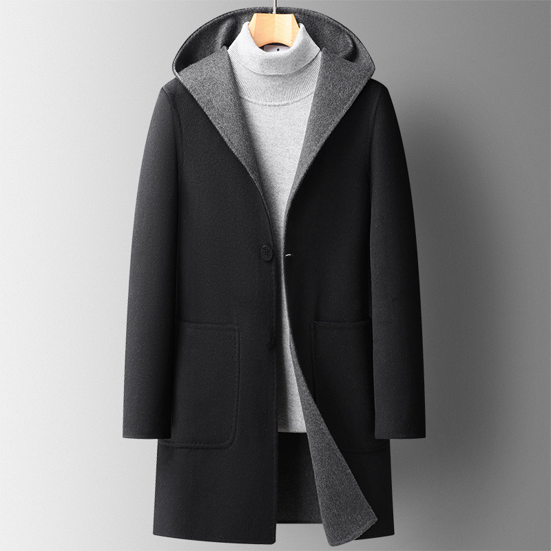 가을과 겨울 후드 양면 울 코트 남성용 중간 길이 양면 네이 코트 남성용 트렌디 한 청소년 코트스토어 가기