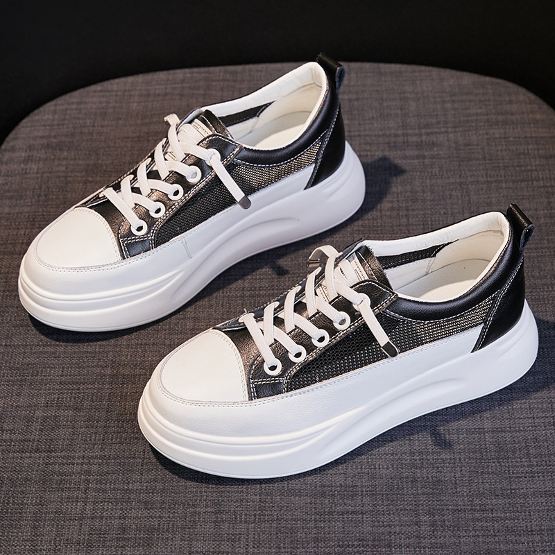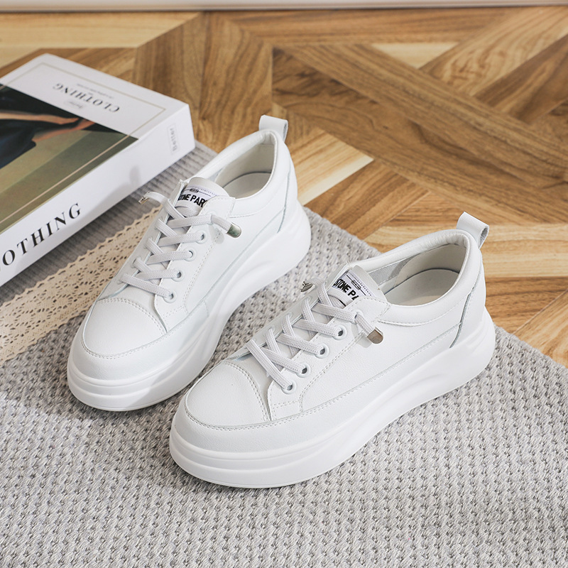 여성용 싱글 레이어 슈즈 플랫폼 슈즈 플랫 슈즈 여성 캐주얼 경량 높이 증가 여성 신발 세련된 새 가죽 흰색 신발스토어 가기
