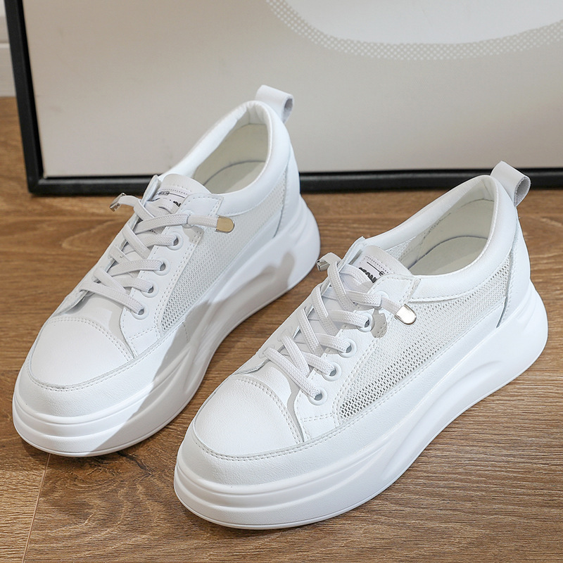 여성용 싱글 레이어 슈즈 플랫폼 슈즈 플랫 슈즈 여성 캐주얼 경량 높이 증가 여성 신발 세련된 새 가죽 흰색 신발