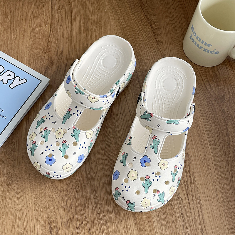 Mary Jane 동굴 신발 여성용 여름 샌들 미끄럼 방지 비치 신발 부드러운 밑창 젤리 신발 한국식 플라스틱 겉옷 슬리퍼