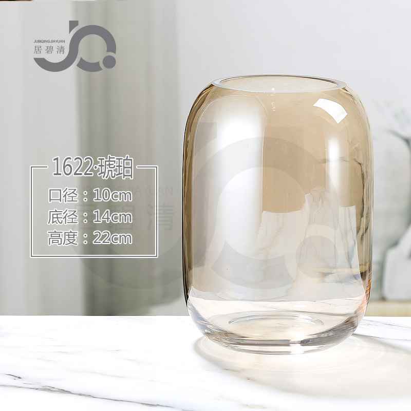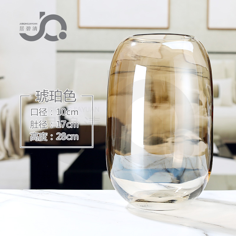 유럽식 현대 간단한 거들 유리 꽃병 작은 입 꽃 풍부한 대나무 꽃 장식 장식품 식탁 복도
