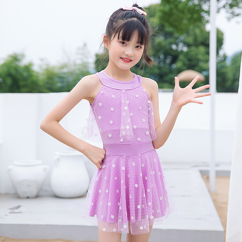 새로운 어린이 수영복 여성용 원피스 스플릿 공주 소녀 수영복 빅 키즈 소녀 스커트 학생 수영복