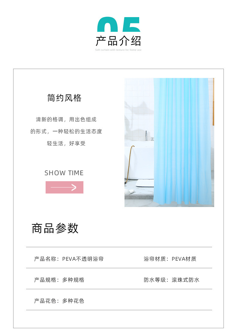 크로스 보더 새로운 단색 샤워 커튼 PEVA 두꺼운 방수 욕실 비 천공 파티션 커튼 욕실 개인 정보 보호 샤워 커튼스토어 가기