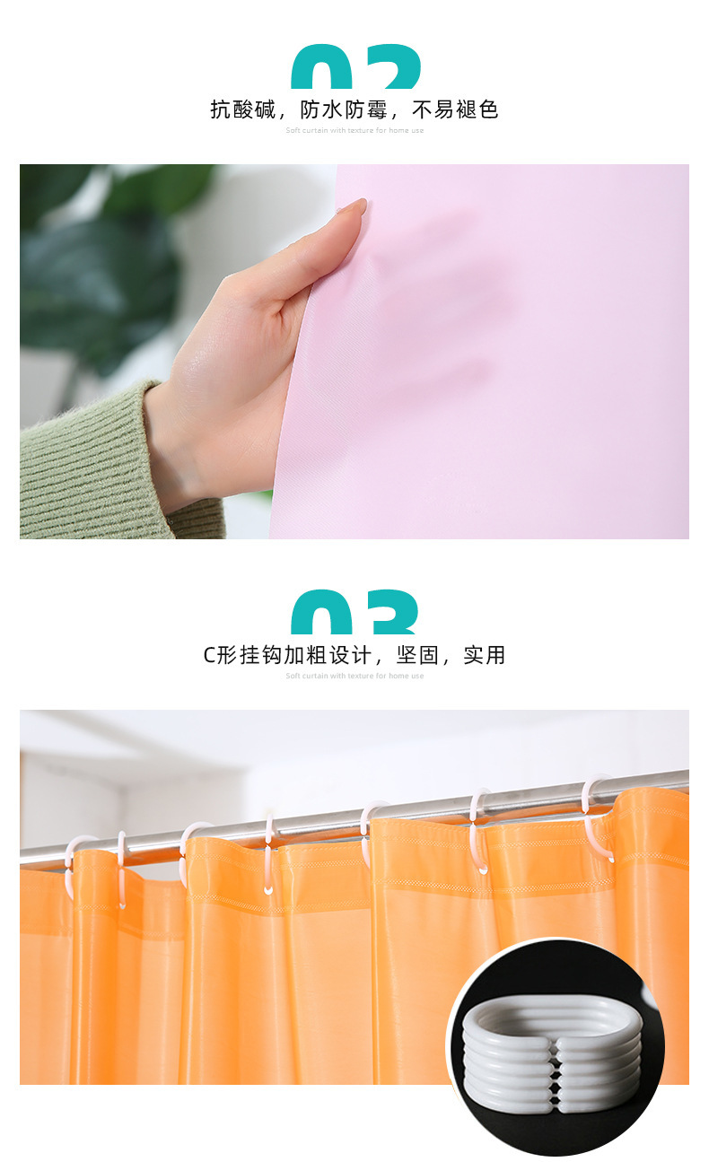 크로스 보더 새로운 단색 샤워 커튼 PEVA 두꺼운 방수 욕실 비 천공 파티션 커튼 욕실 개인 정보 보호 샤워 커튼