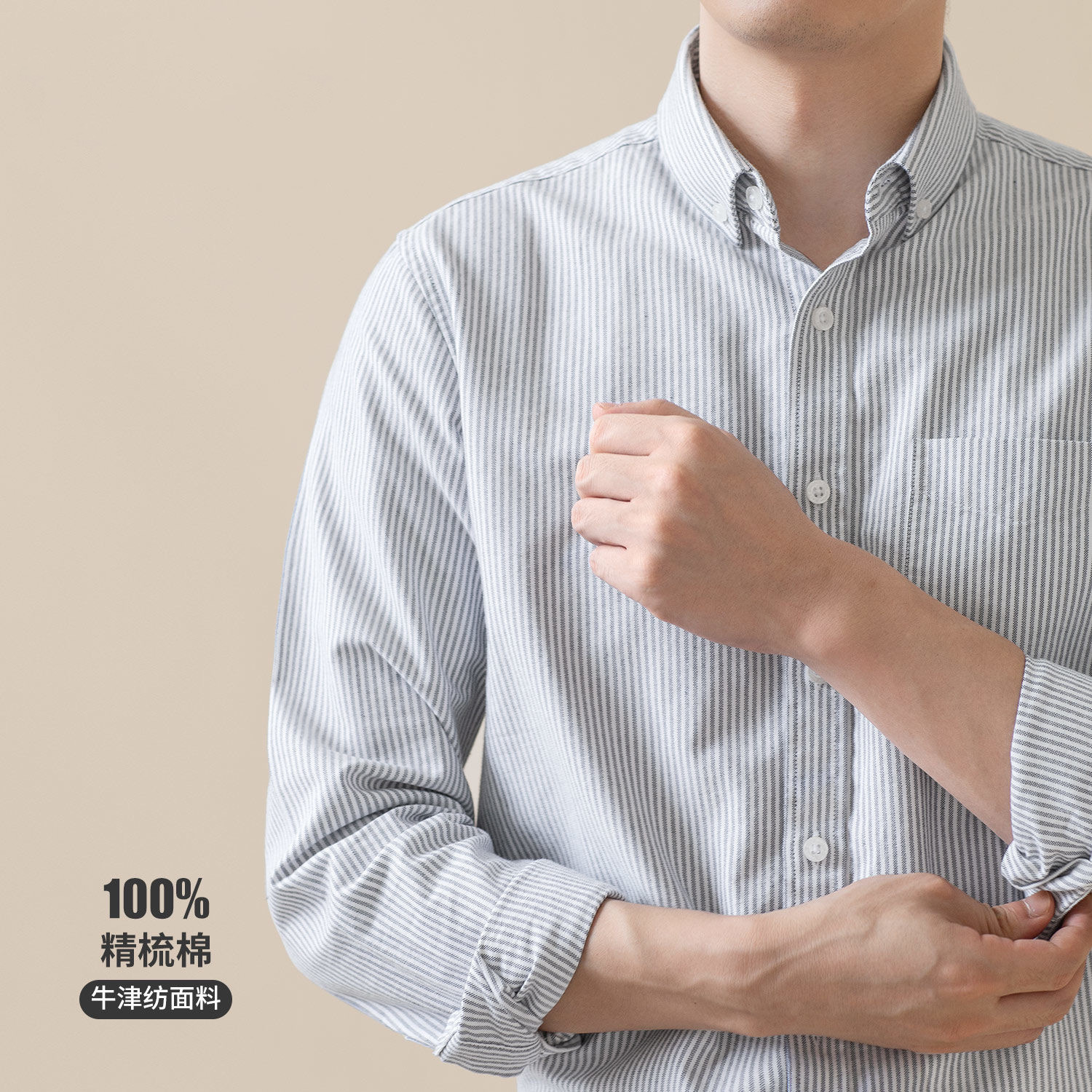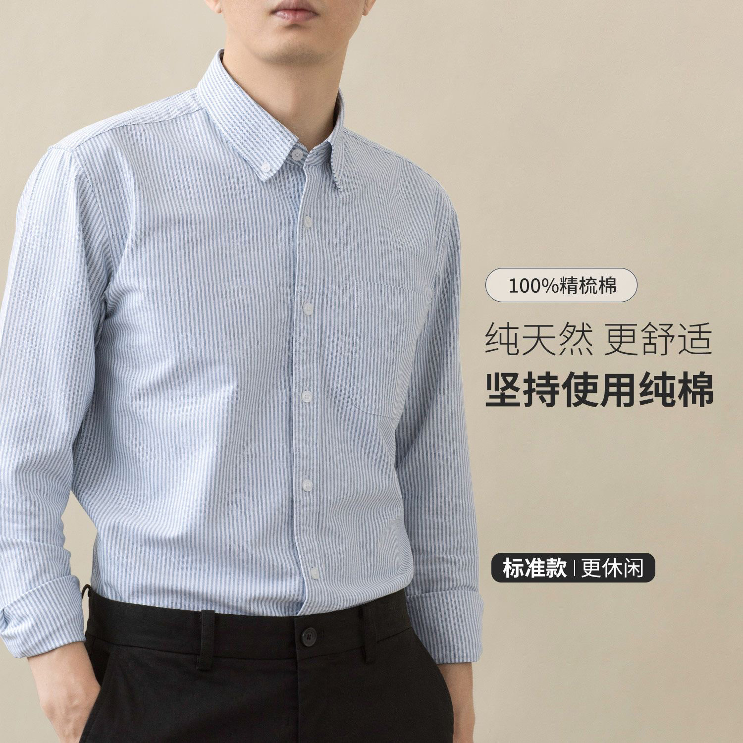 가을 신상 순면 세로 스트라이프 셔츠 남성용 긴팔 비즈니스 캐주얼 올매치 옥스포드 면 셔츠 남성복스토어 가기