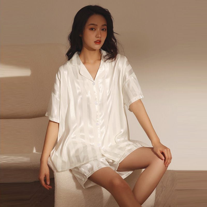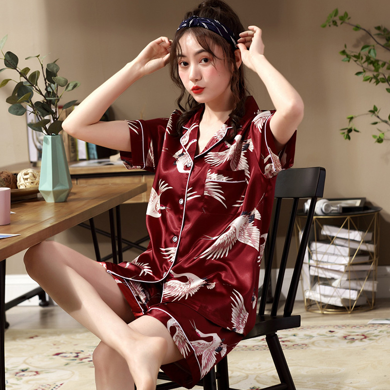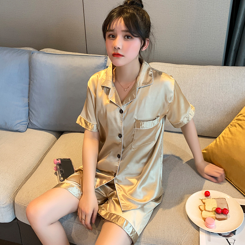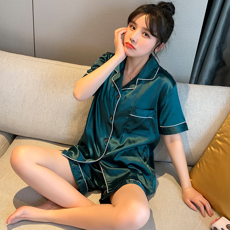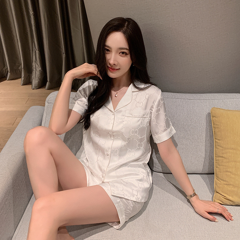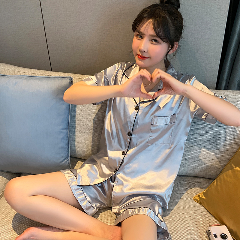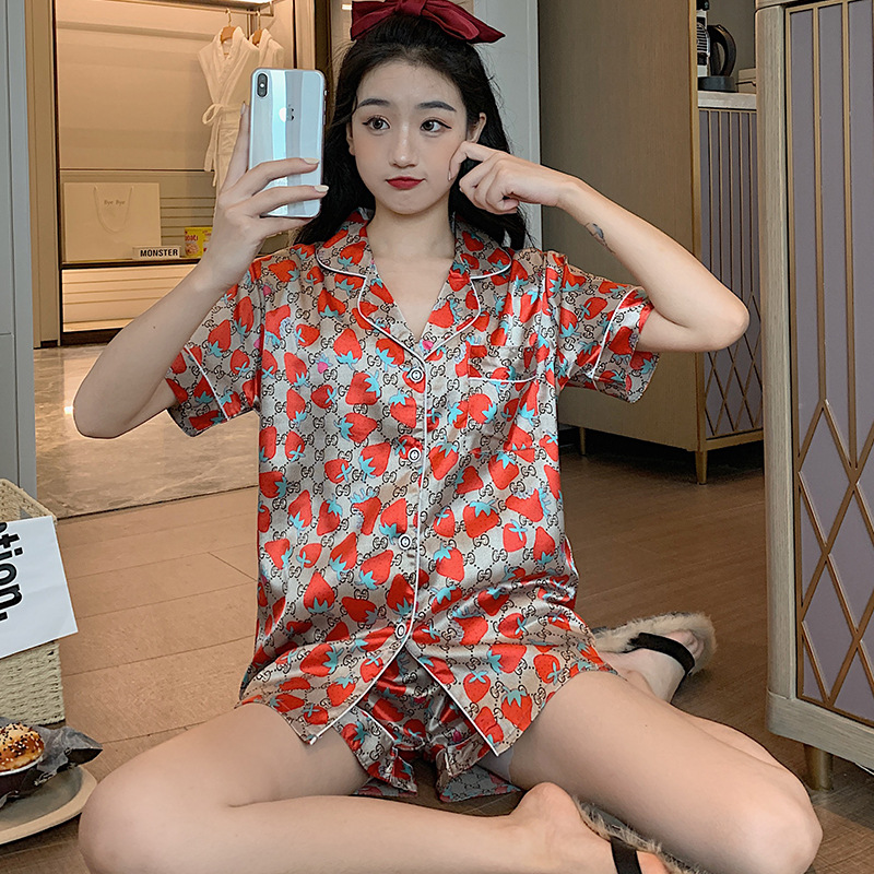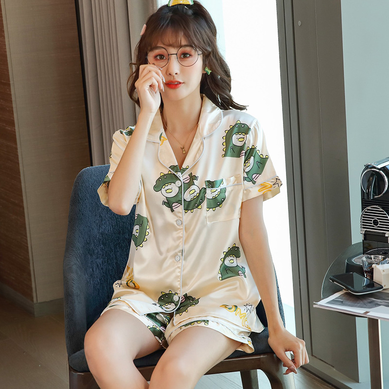 여성을위한 여름 반팔 잠옷 얼음 실크 얇은 섹션 학생 느슨한 대형 귀여운 가정 의류 투피스 양복 봄 가을 여름