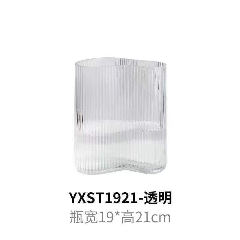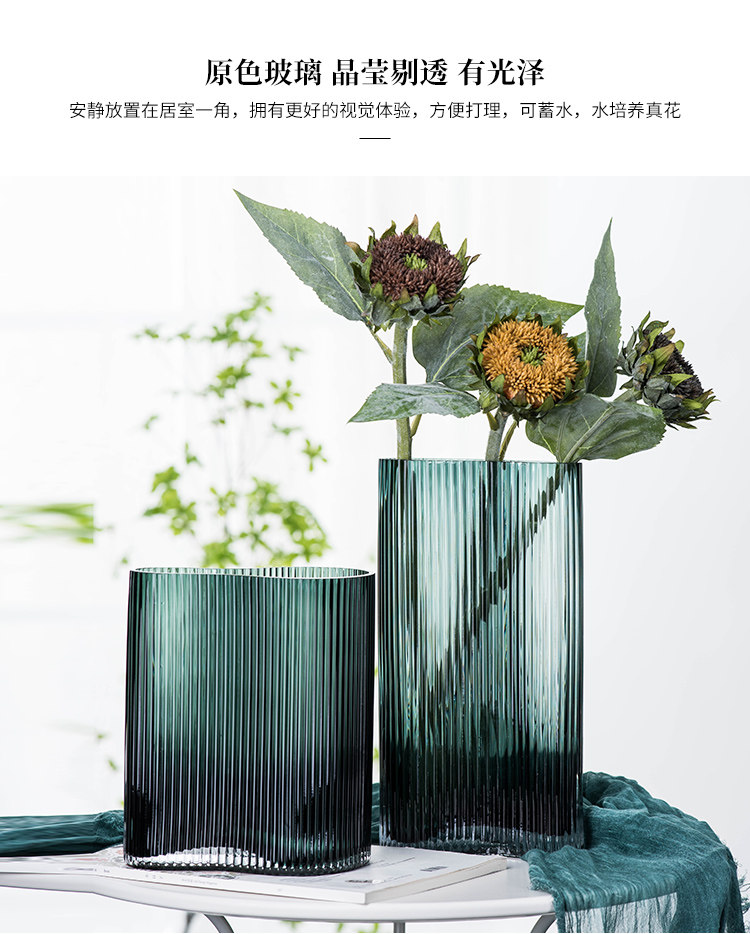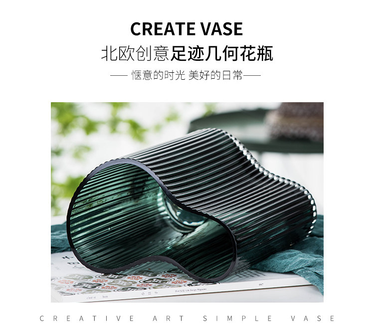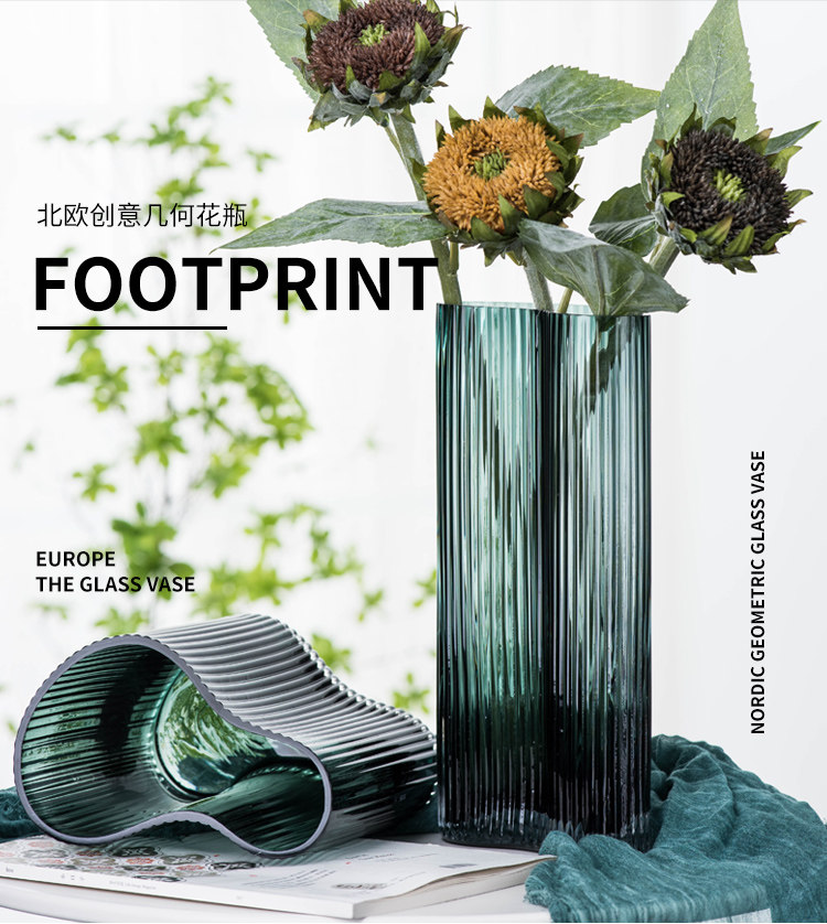 현대 간단한 투명 대형 꽃병 홈 거실 장식 꽃 장식품 창조적 인 발자국 기하학적 유리 꽃병스토어 가기