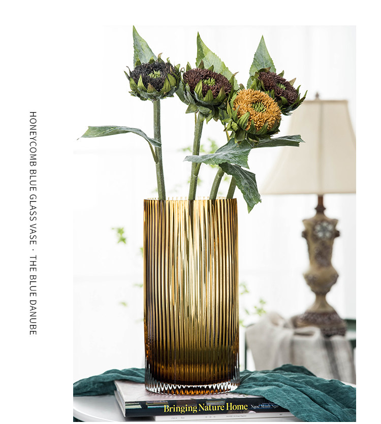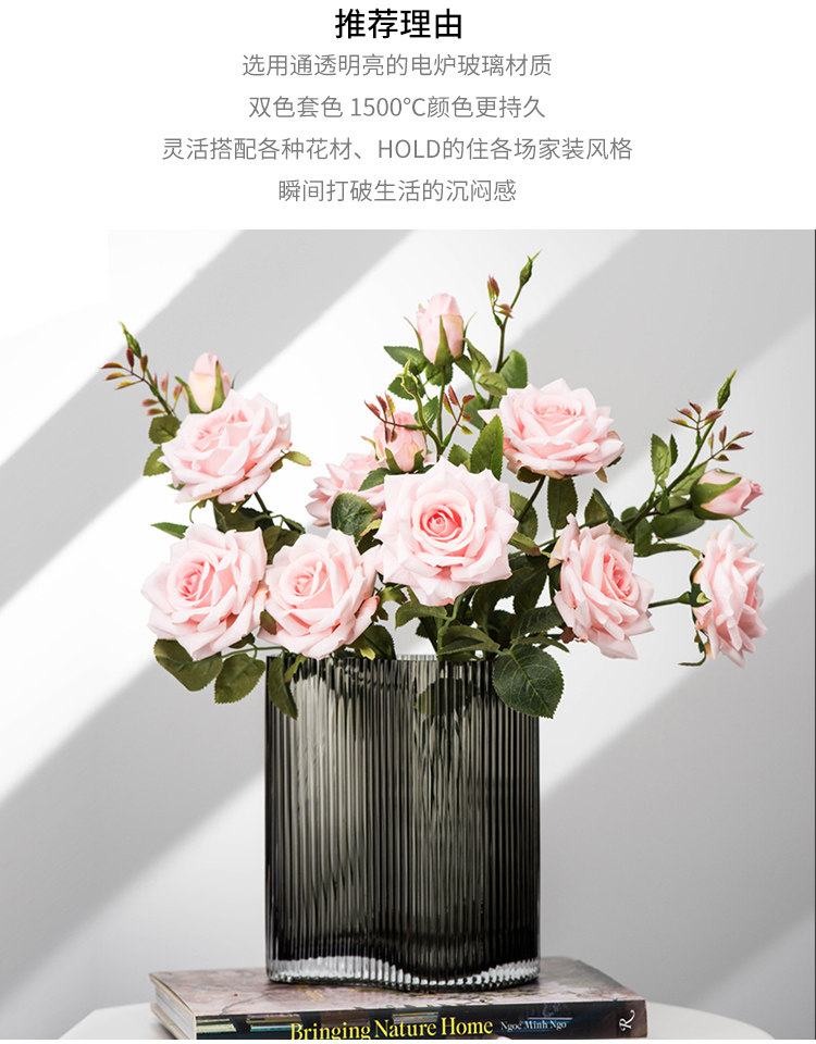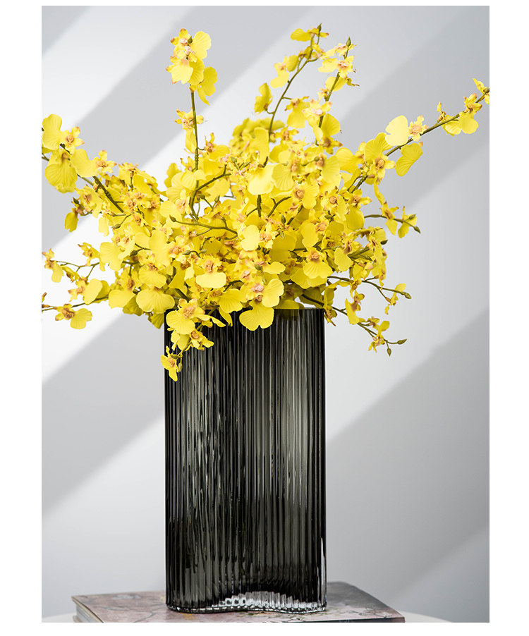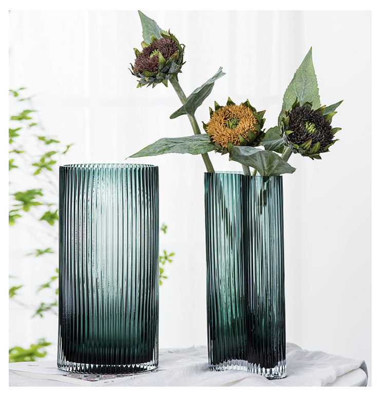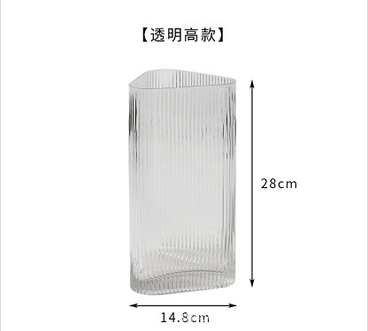 현대 간단한 투명 대형 꽃병 홈 거실 장식 꽃 장식품 창조적 인 발자국 기하학적 유리 꽃병