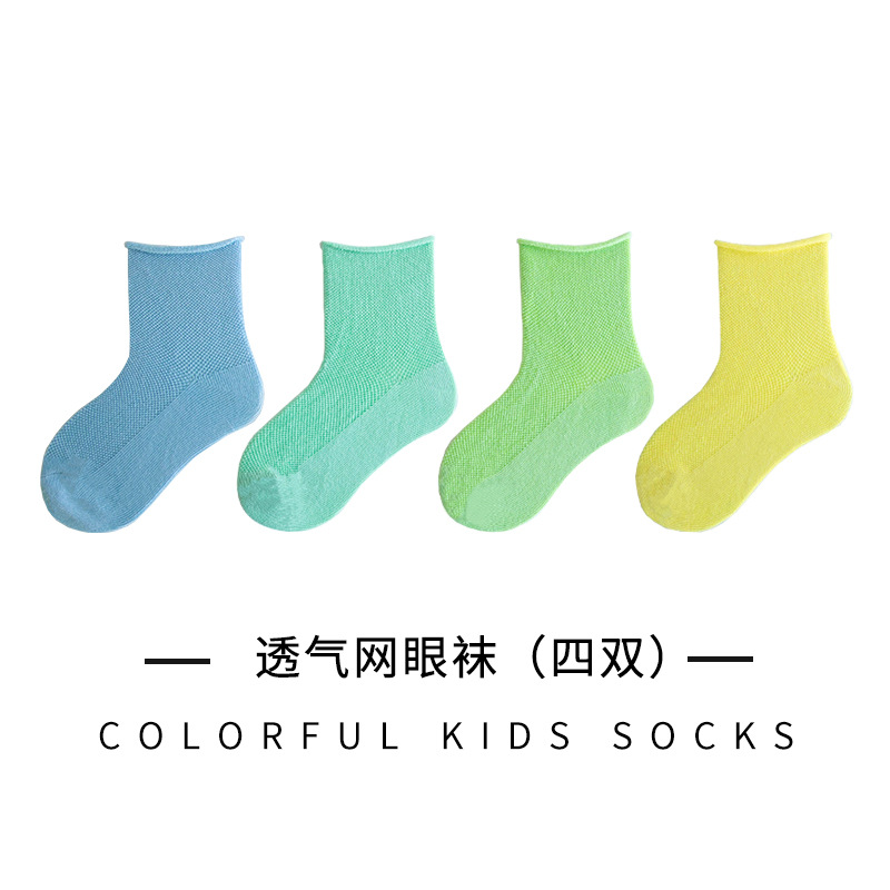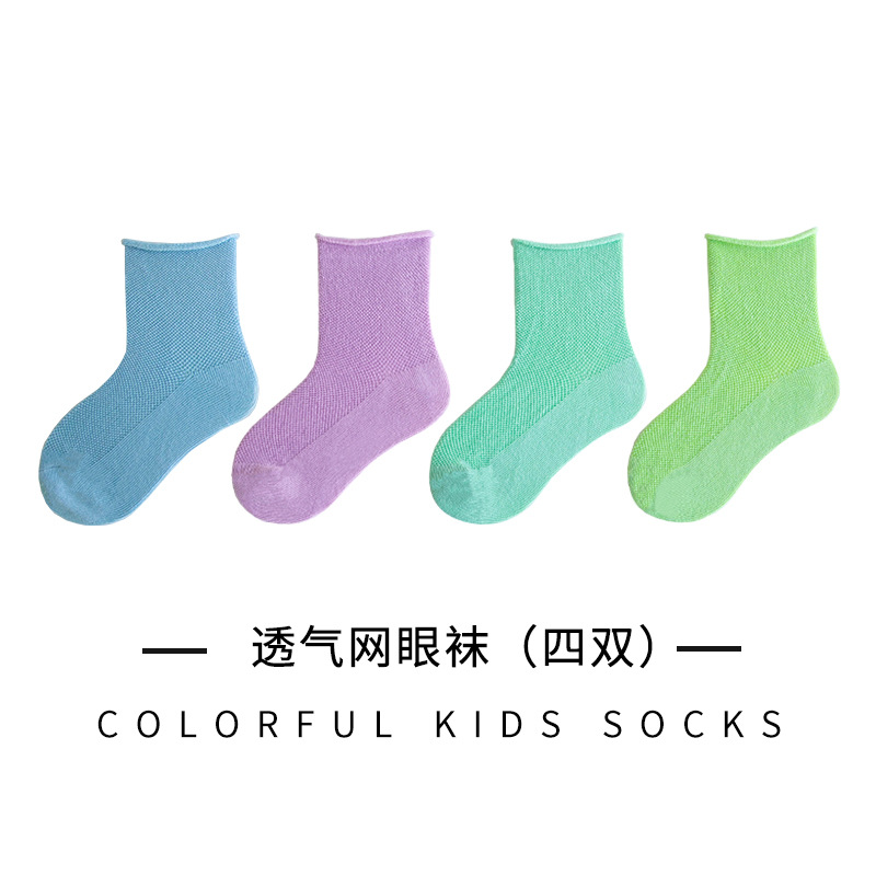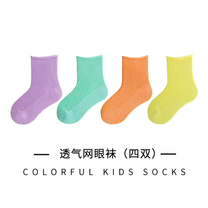 어린이 양말 여름 얇은 캔디 컬러 컬링 메쉬 소년과 소녀의 아기 양말은면 중간 종아리 길이 양말을 빗어
