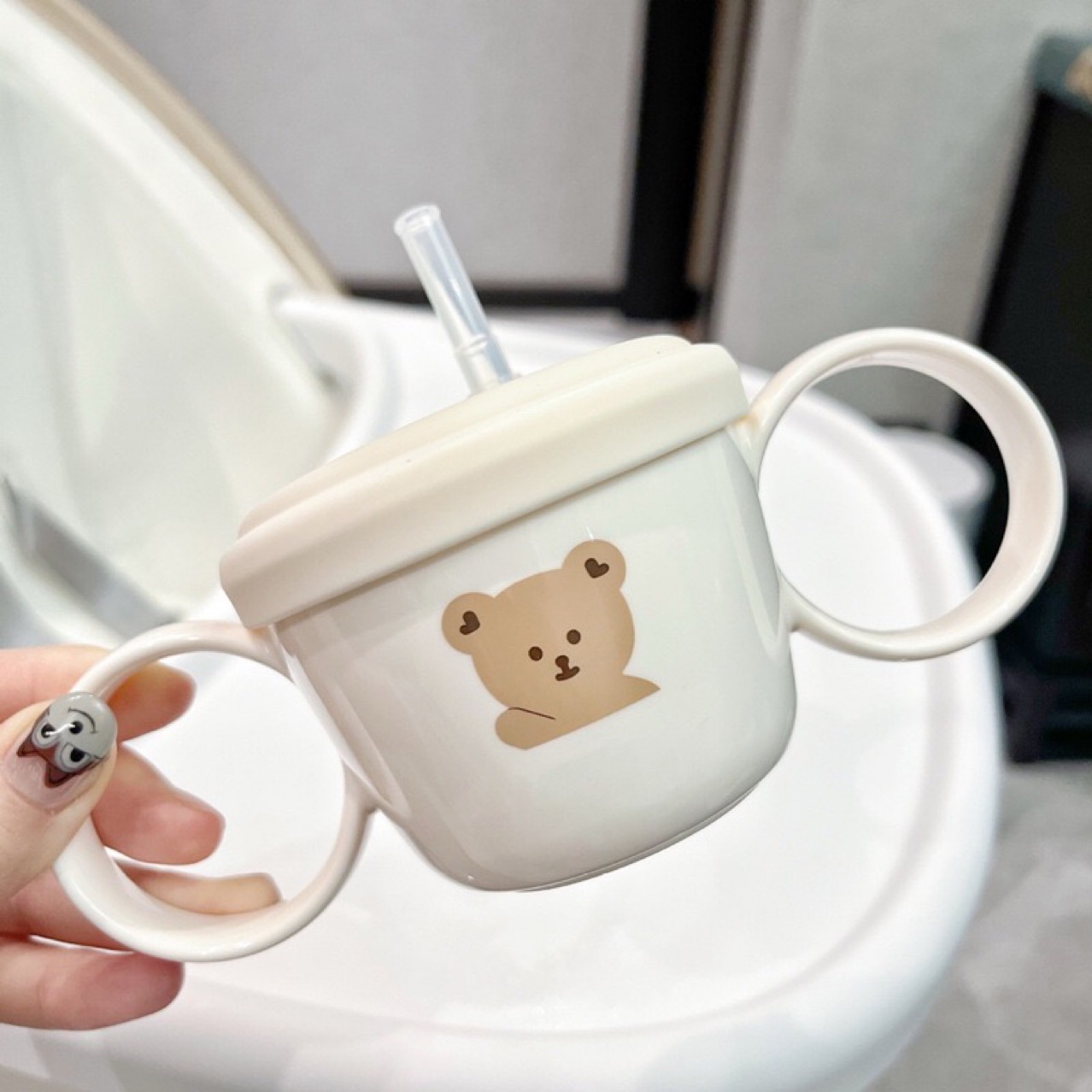 In 한국 만화 뚜껑과 손잡이 스낵 저장 컵과 고온 저항 어린이 마시는 컵스토어 가기