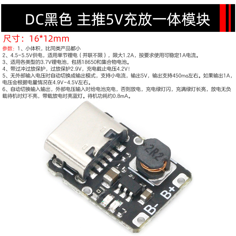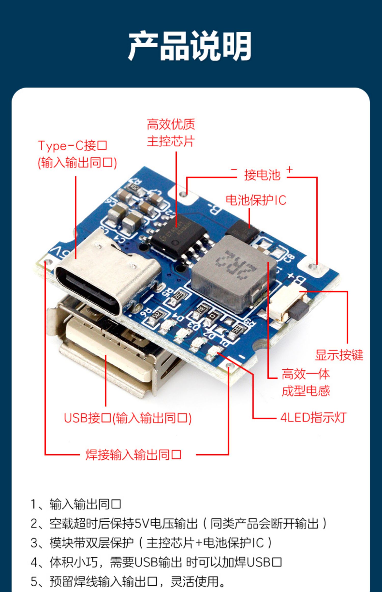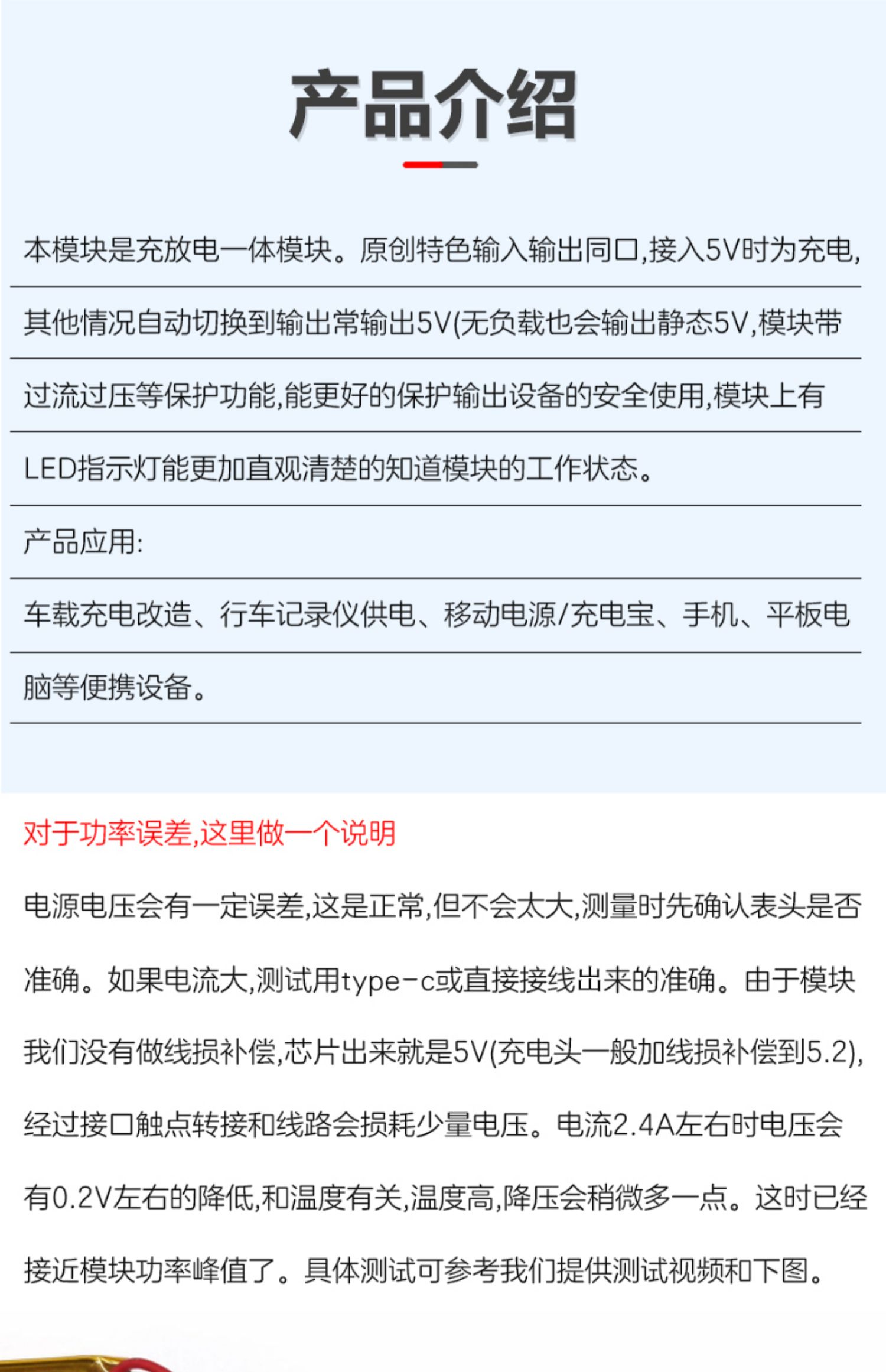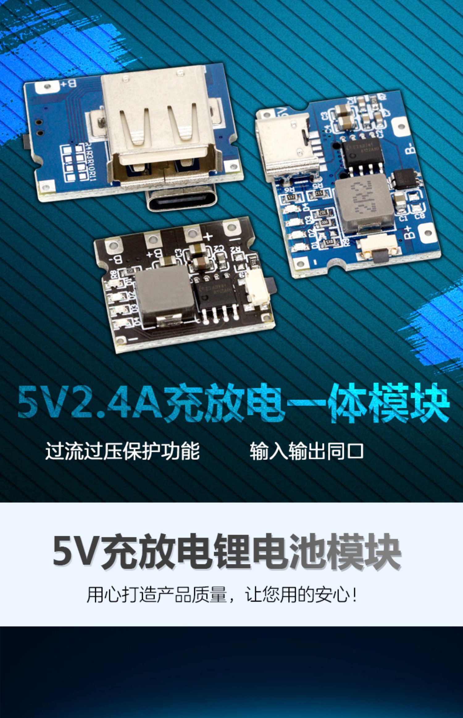 5V2A/2.4A 충전 리튬 배터리 충전 모듈 전원 유형-c 포트 입력 및 출력 가능 정상 개방스토어 가기
