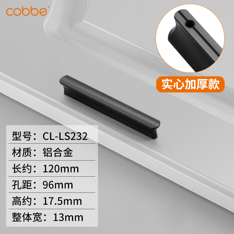 • 라운드 작은 허리 긴 알루미늄 핸들 블랙 150mm