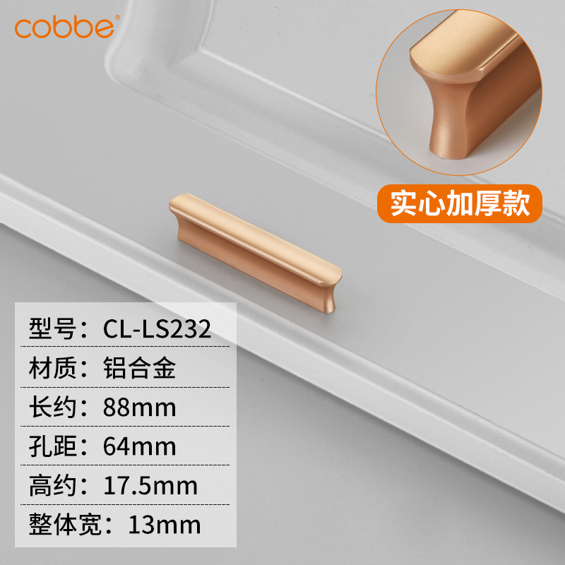 • 둥근 작은 허리 긴 알루미늄 손잡이 로즈 골드 88mm