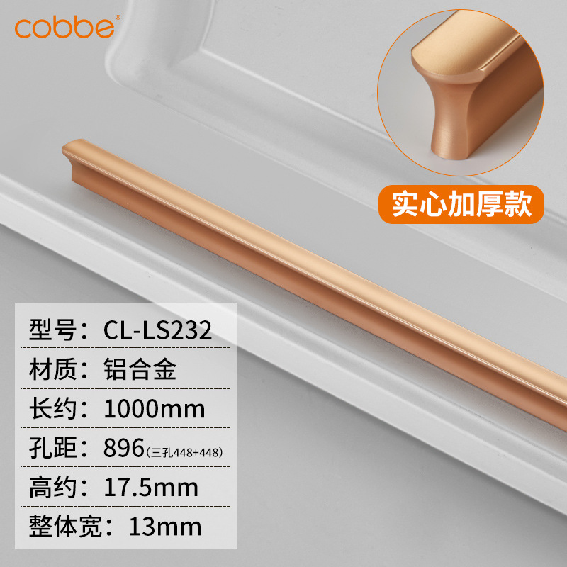 • 둥근 작은 허리 긴 알루미늄 손잡이 로즈 골드 1000mm