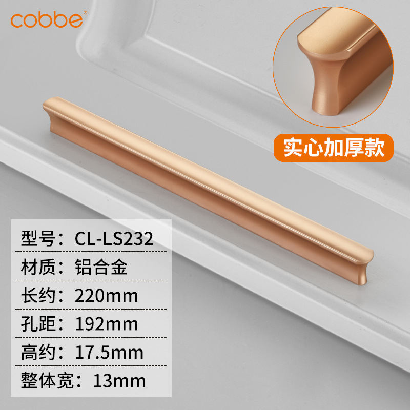• 둥근 작은 허리 긴 알루미늄 손잡이 로즈 골드 220mm