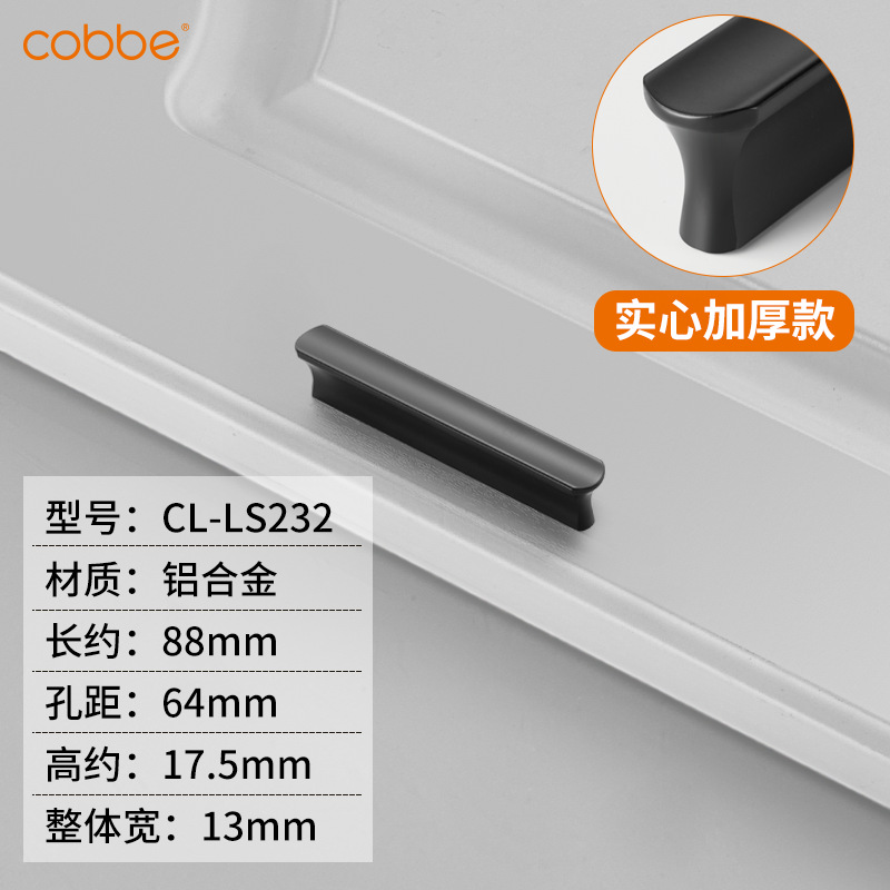 • 둥근 작은 허리 긴 알루미늄 핸들 블랙 88mm