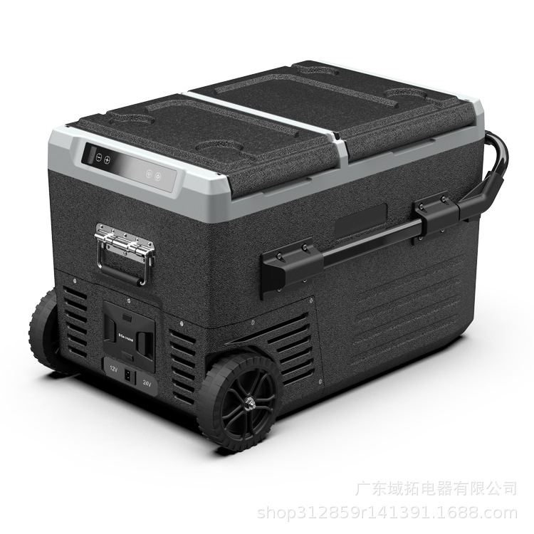 바퀴가 달린 45L 이중 온도 이중 제어 Luxan 내장 배터리 자동차 압축기 냉장고 모바일 야외 캠핑 냉장고스토어 가기