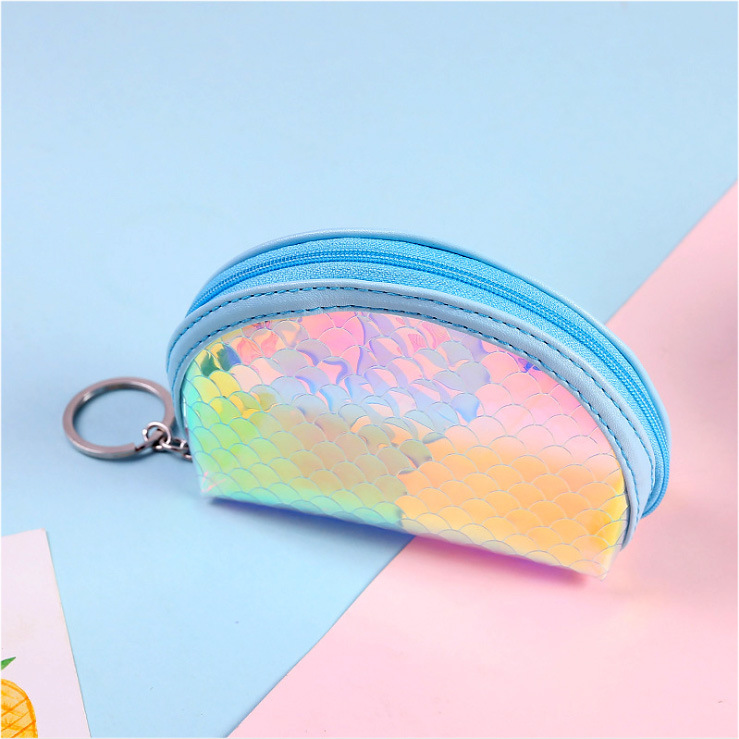 • 레이저 물고기 스케일 패턴 동전 지갑-파란색 반원