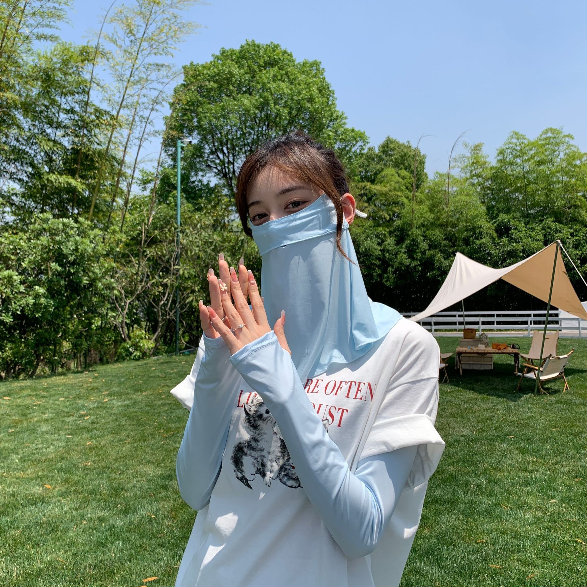 얼음 실크 자외선 차단제 운전 베일 얼굴 덮음 얼음 실크 소매 자외선 차단 여름 팔 보호 귀여운 얼음 소매