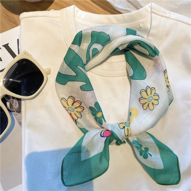 봄과 여름 면 예술적 스카프 꽃 작은 광장 스카프 빈티지 인쇄 스카프 면 얇은 목 스카프 헤어 밴드