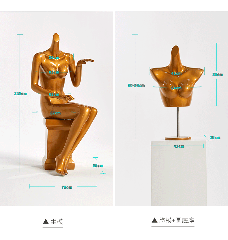 • 어깨가 편평한 밝은 흰색 여성 가슴 모델(골드 색상은 고객 서비스에 문의하세요)