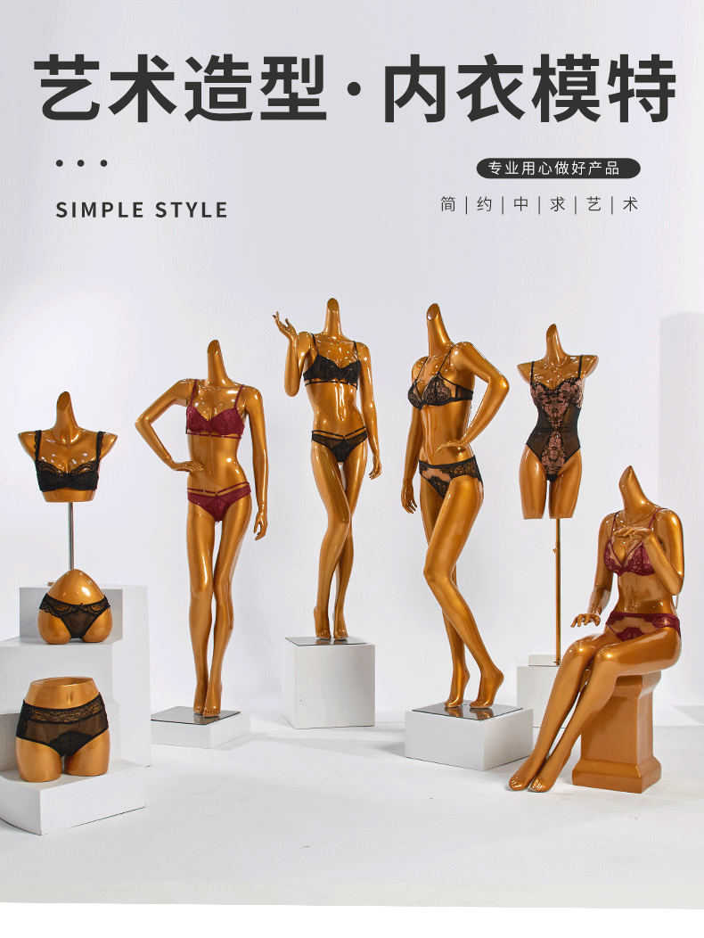 의류 매장 속옷 모델 디스플레이 스탠드 여성 창 수영복 마네킹 밝은 황금색 잠옷 패션 여성 모델 소품스토어 가기
