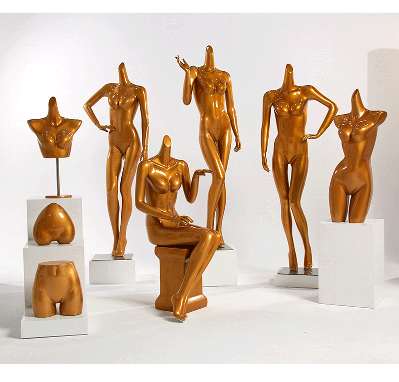 의류 매장 속옷 모델 디스플레이 스탠드 여성 창 수영복 마네킹 밝은 황금색 잠옷 패션 여성 모델 소품
