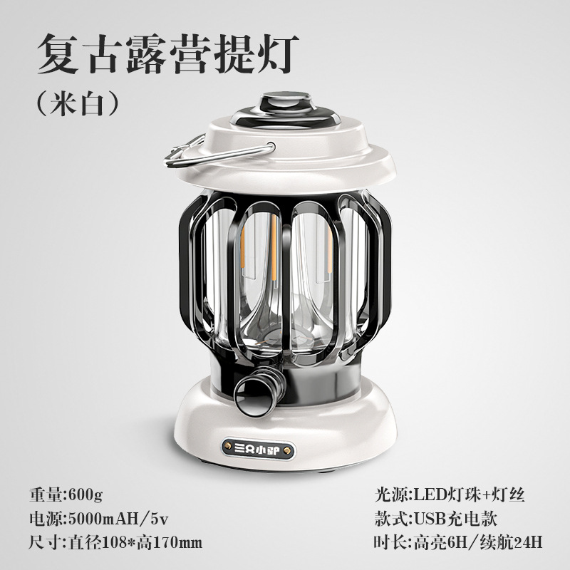 세 작은 당나귀 야외 캠프 USB 충전 빛 캠핑 텐트 복고풍 캠핑 조명 랜턴 슈퍼 긴 내구성